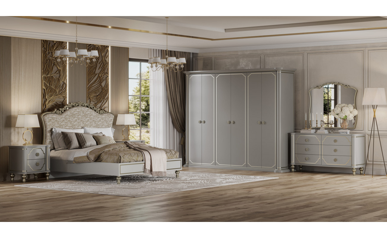 | Шкаф 4-х ств.1947х684х2328 мм | Кровать (180х200)2096х2055х1586 мм | Тумба прикроватная (2шт)700х451х700 мм |