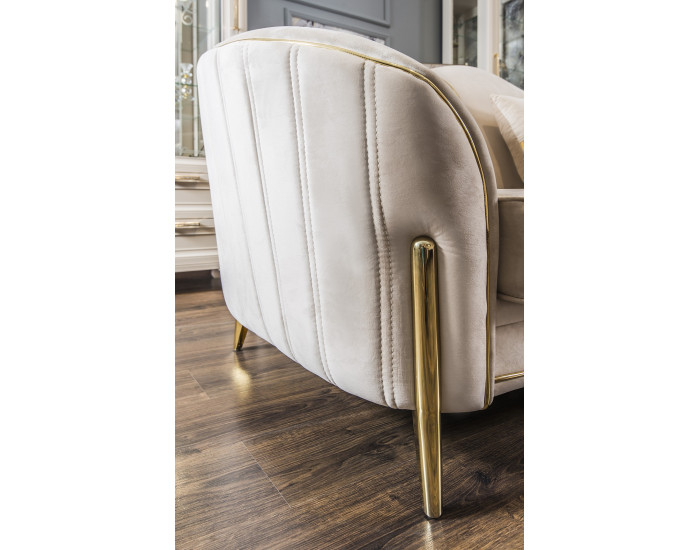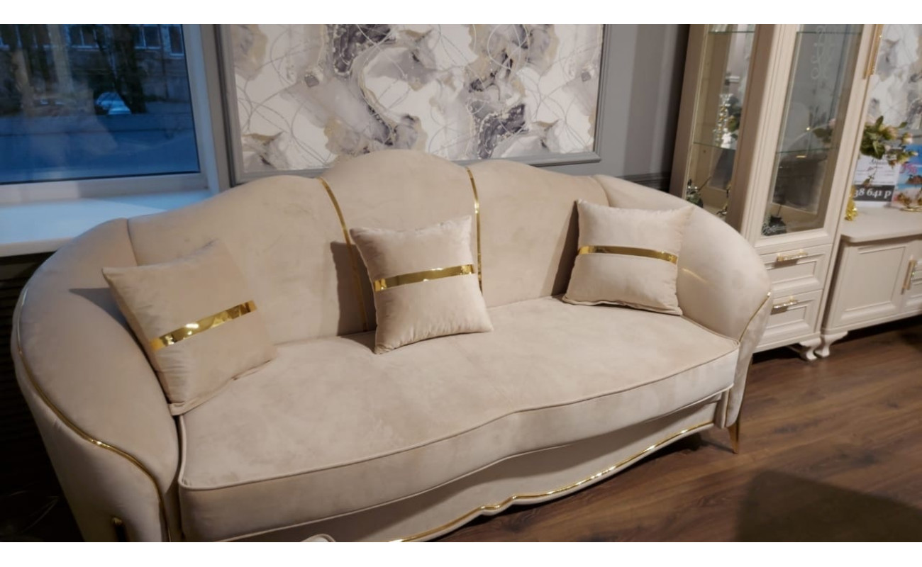 | Материал декора | Декоративная тесьма на подушках, кант на диване - экокожа золото; Тыльная часть - велюр украшен декоративной строчкой |