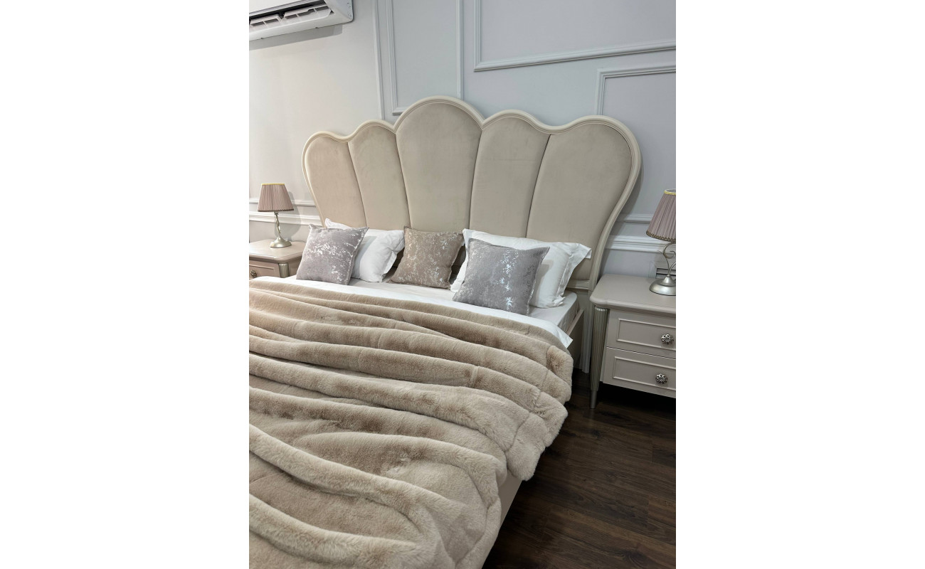 Материал изголовья | Изготавливается из цельной плиты ЛДСП с багетом из ППУ сатин шампань,в виде бутона цветка |