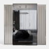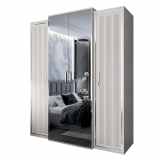 Материал фасадаМДФ с фрезеровкой и вставкой из пластика под хром. | Зеркало характеристики3 зеркала с фацетом. Приклеивается по технологии полного закрашивания полотна клеем, затемненные-бронза | НаполнениеШкаф разделен на 4 секции (1+2+1+1), крайние 1ств - 4 полки, 2х и 1 ств. средние - 2 полки, 1 штанга |