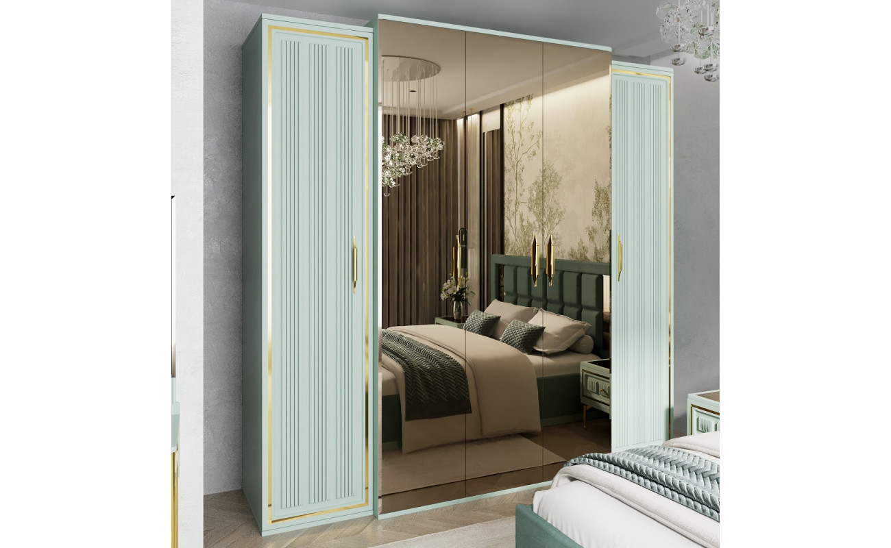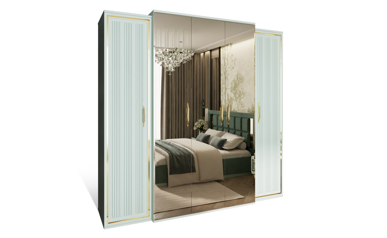 Фасады оснащены фурнитурой с доводчиком и украшены металлизированным латунным декором — этот тренд сезона является авторским стилем фабрики Эра и такой же декор используется в спальне Lara – это расширяет возможности и позволяет миксовать коллекции новинок.