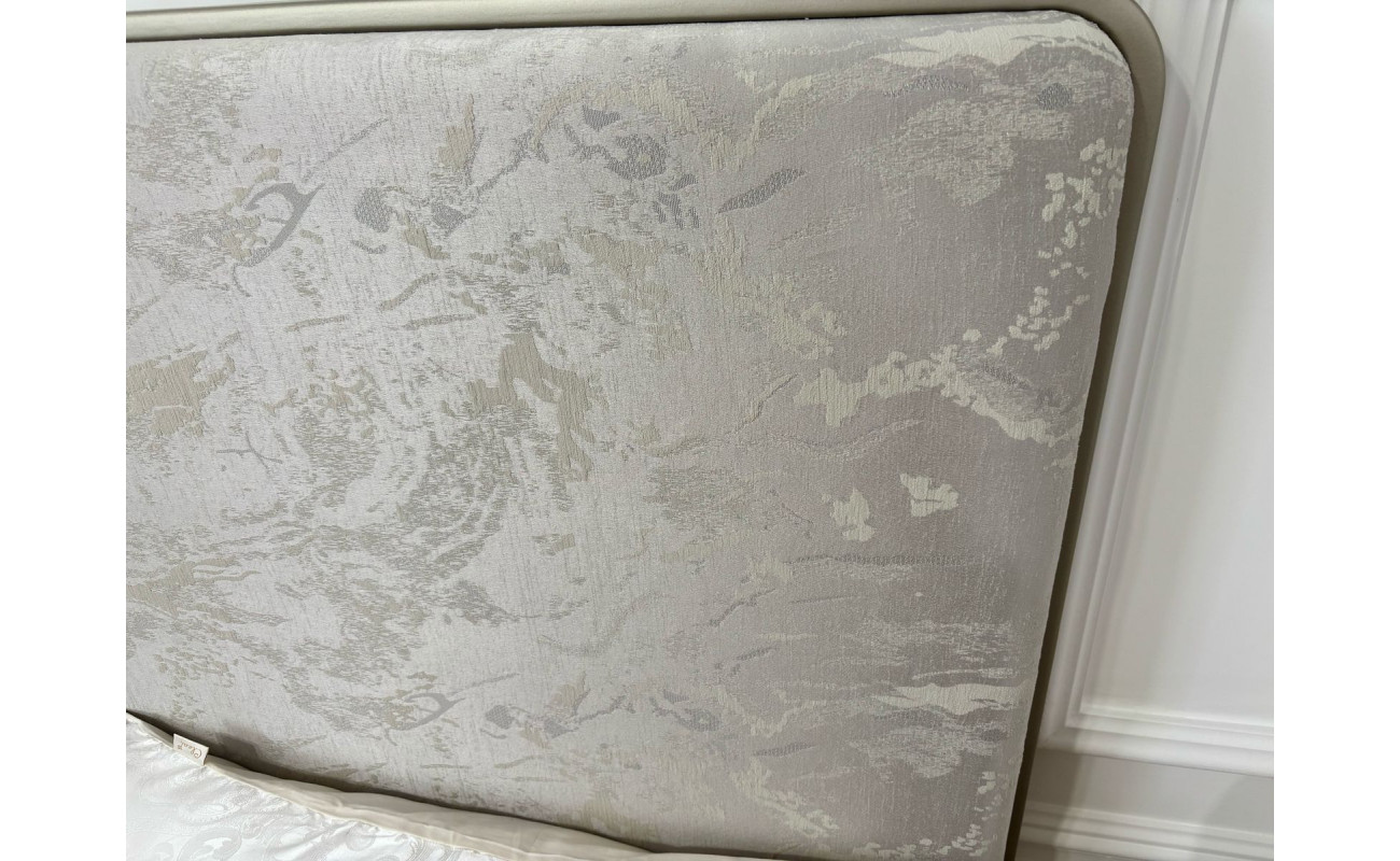 Кровать с мягкой вставкой из мраморного жаккарда нежно серо-бежевого цвета