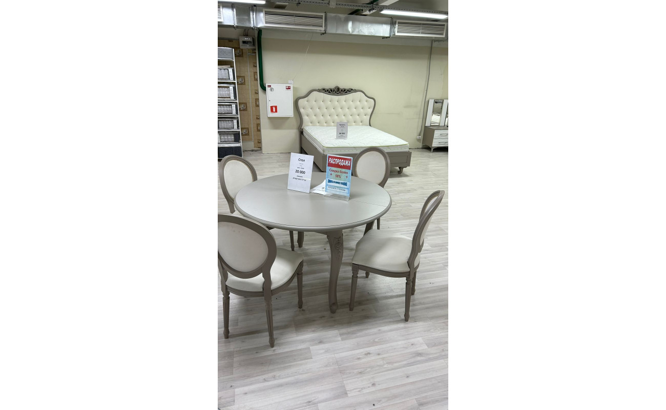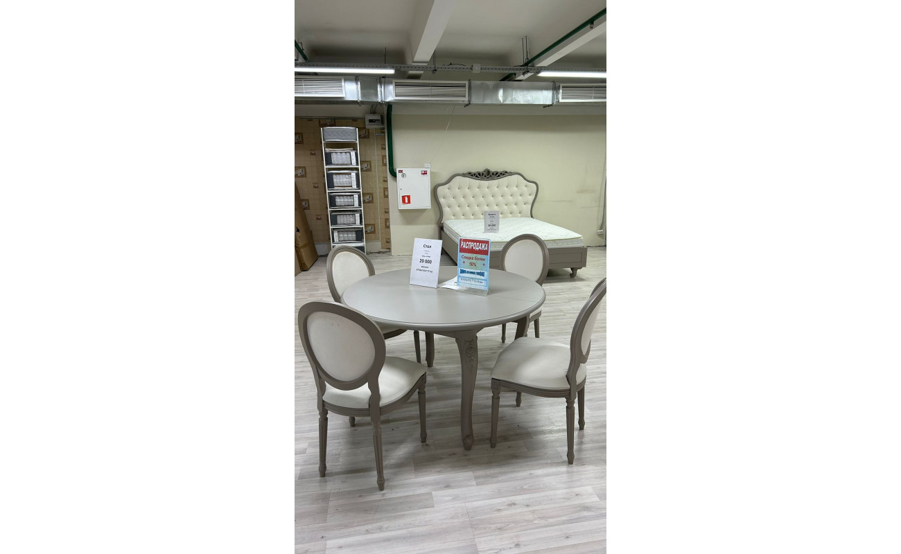 МОККО — это столовая группа с круглым столом и мягкими стульями на античных ножках.