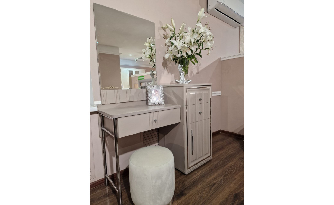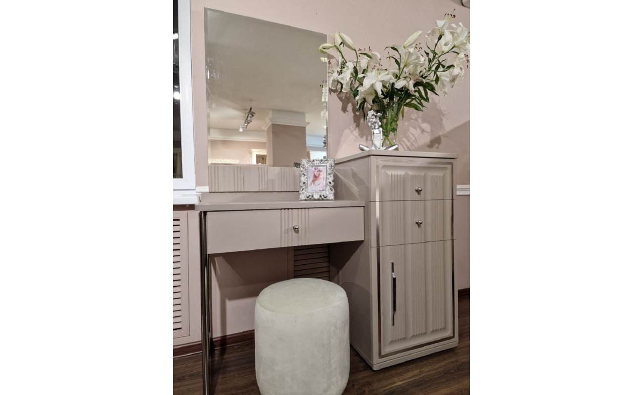 КомплектацияТуалетный стол состоит из стола и тумбы | Ширина1200 мм | Глубина500 мм |