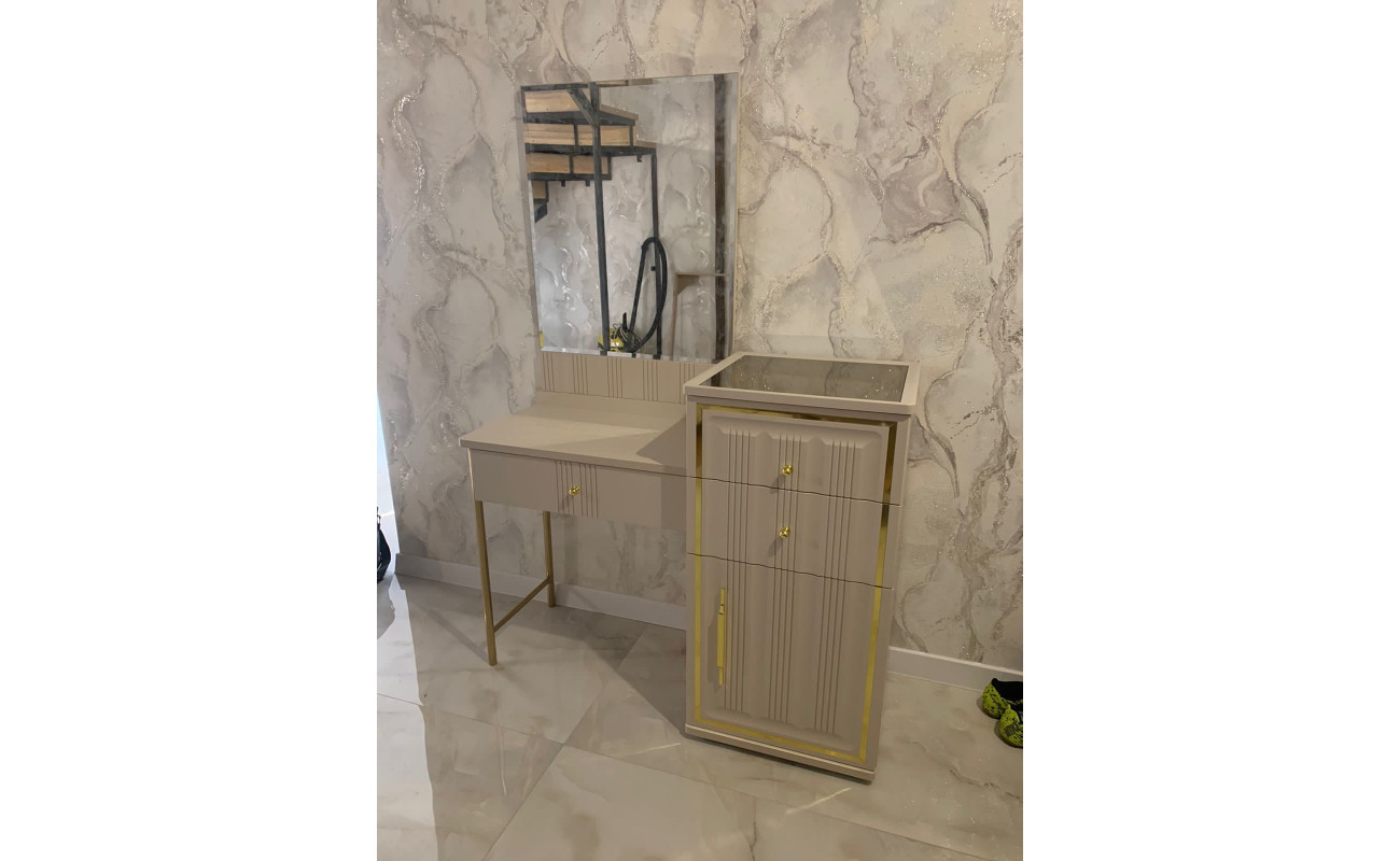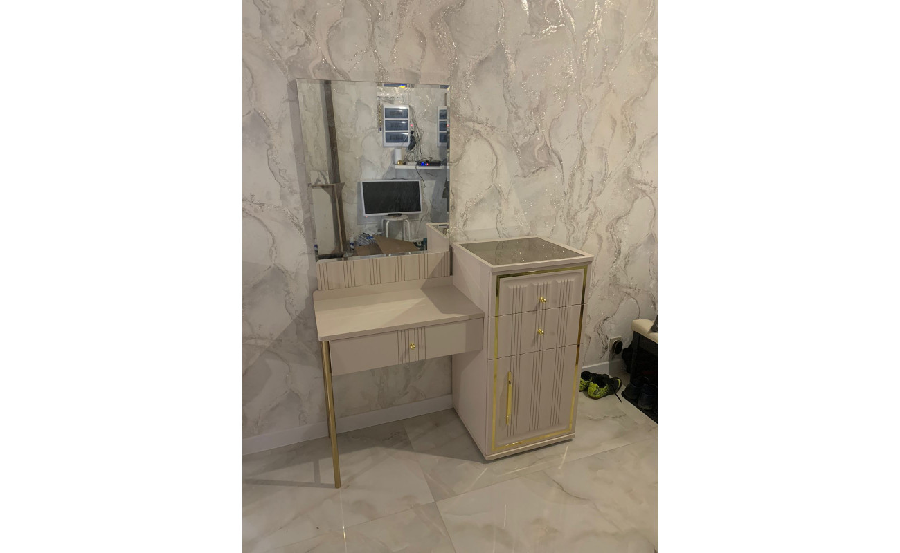 | ЦветБежевый | Материал корпусаЗеркальное полотно на панели из МДФ | Материал фасадаМДФ с фрезеровкой |