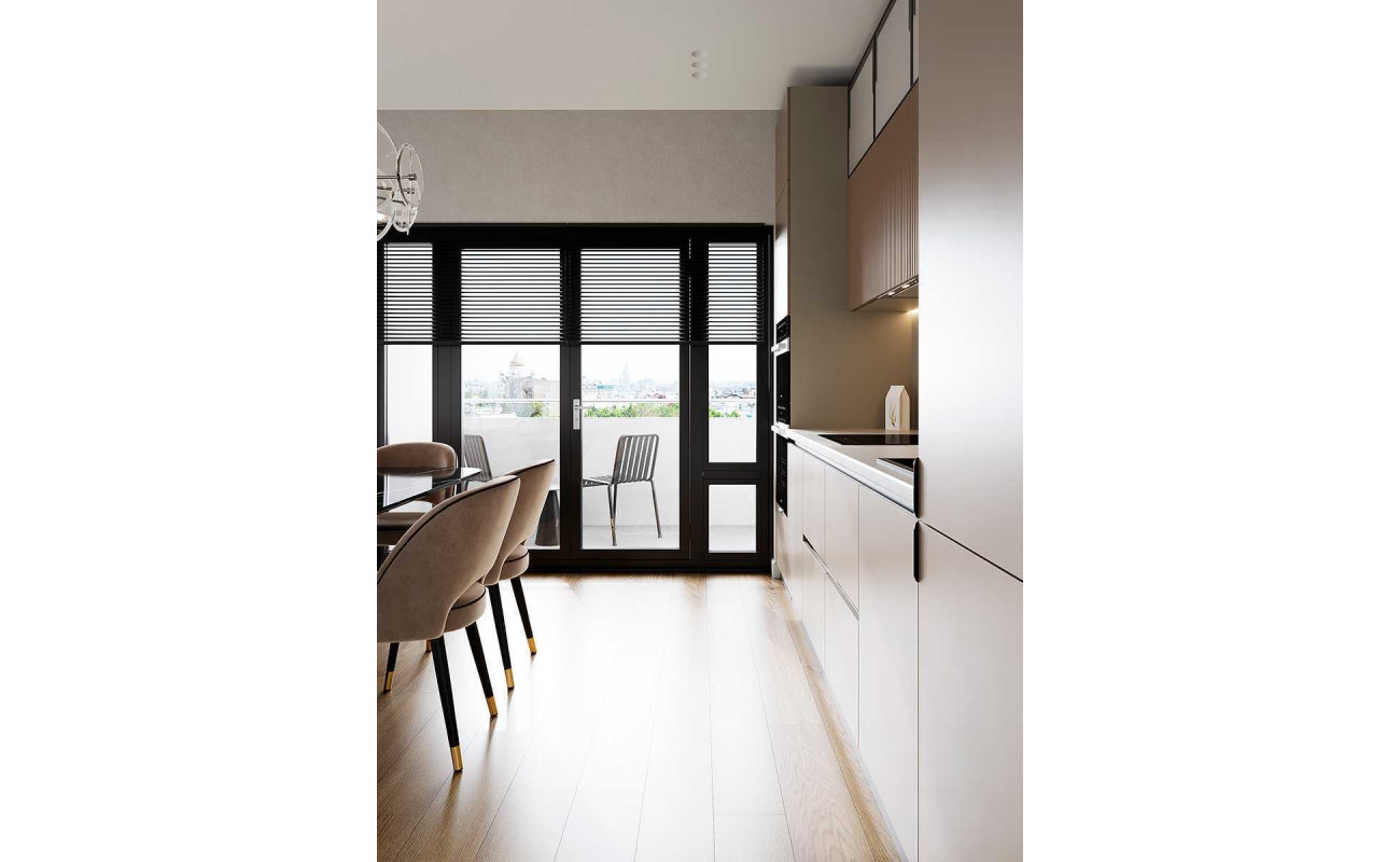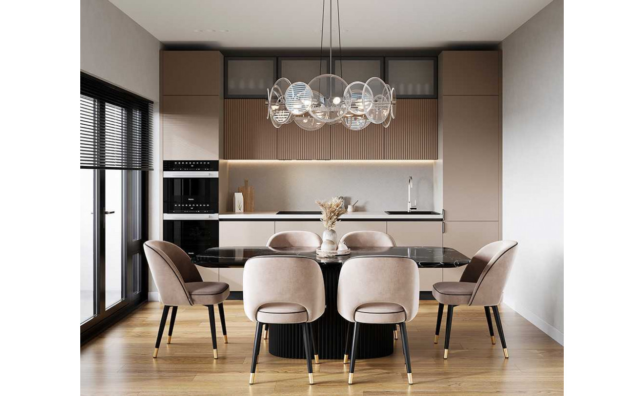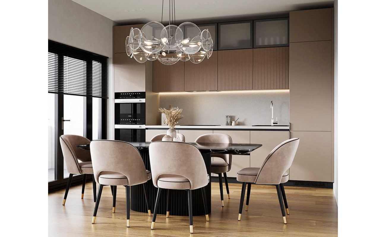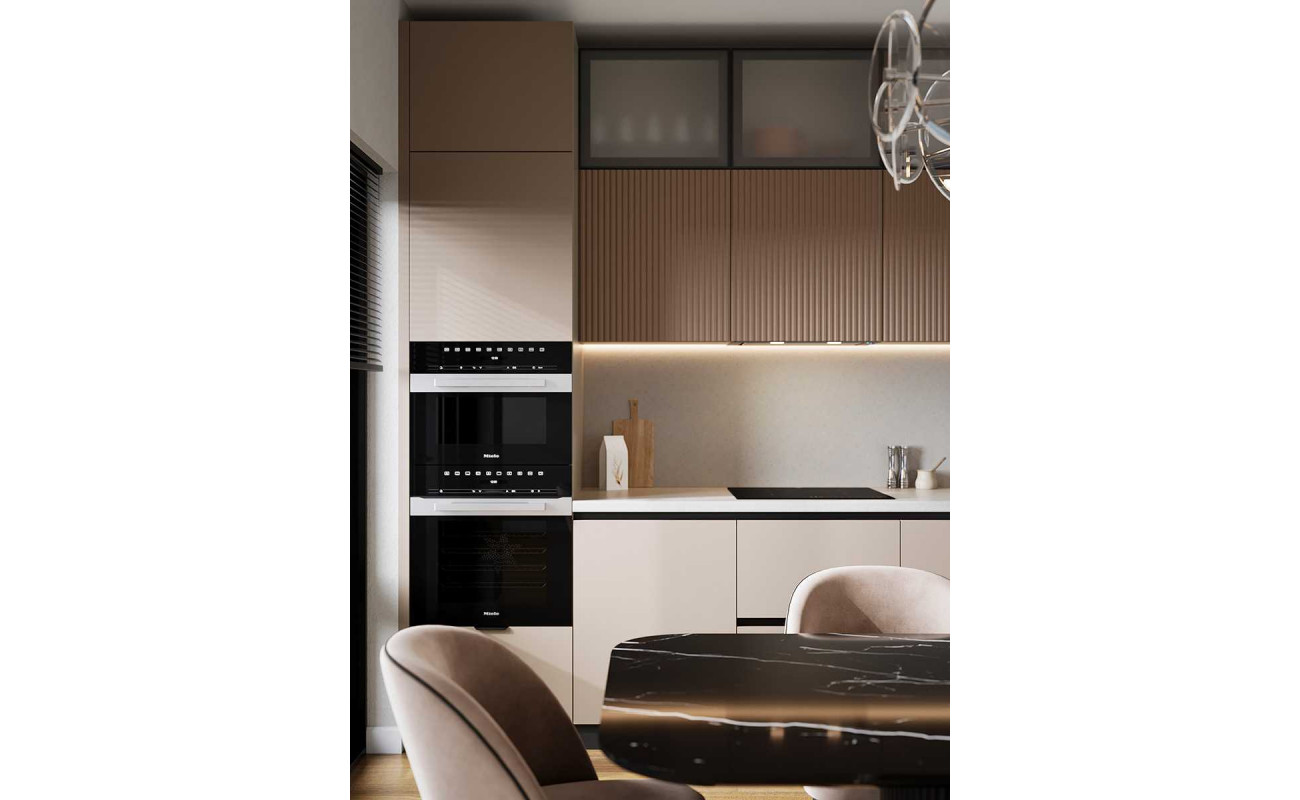 Современное минималистичное решение с механизмами скрытого монтажа и профилем вместо ручек