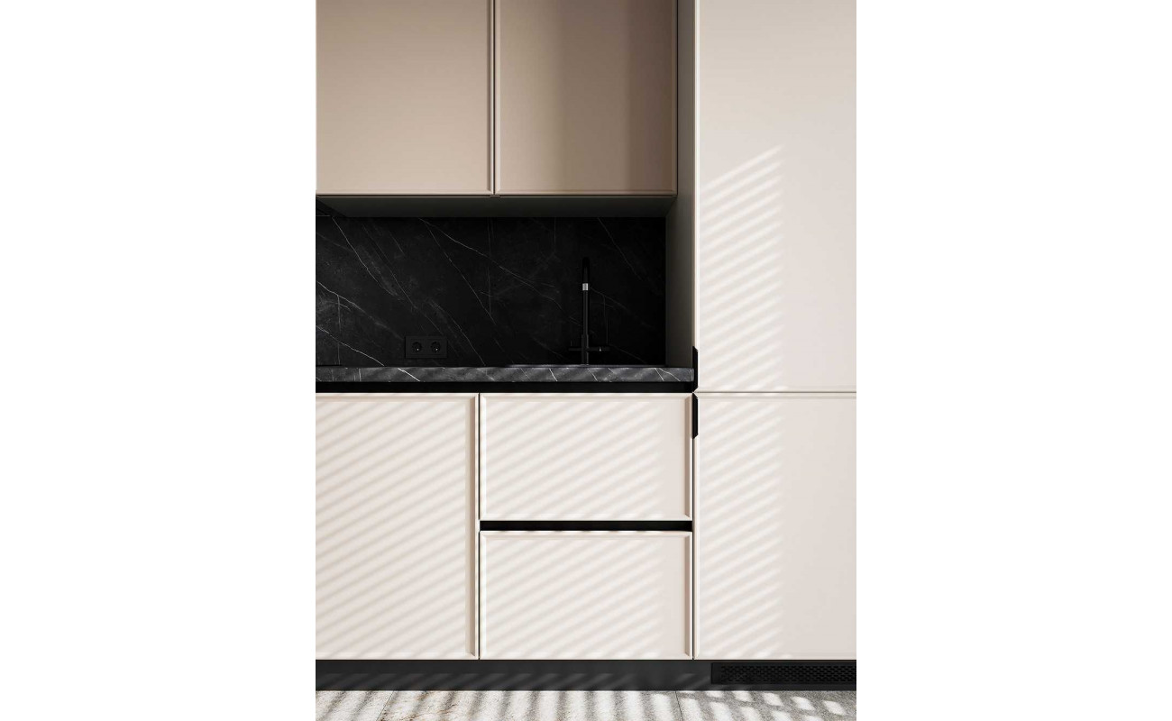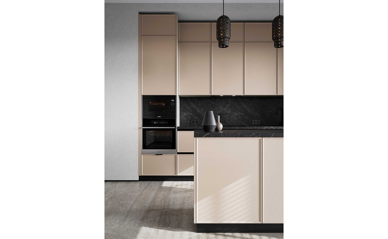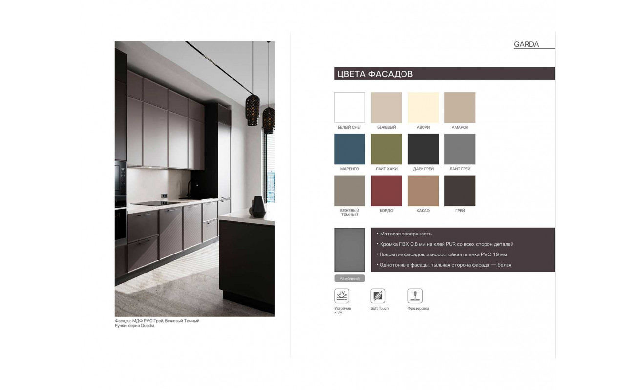 Garda — коллекция с фрезерованными фасадами узкой рамкой, которая придаёт кухне утонченность и графичность