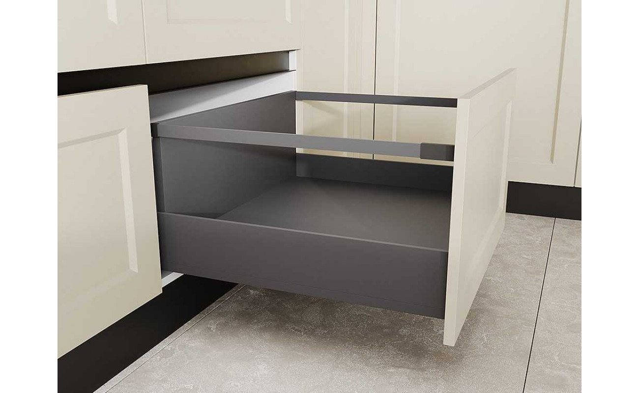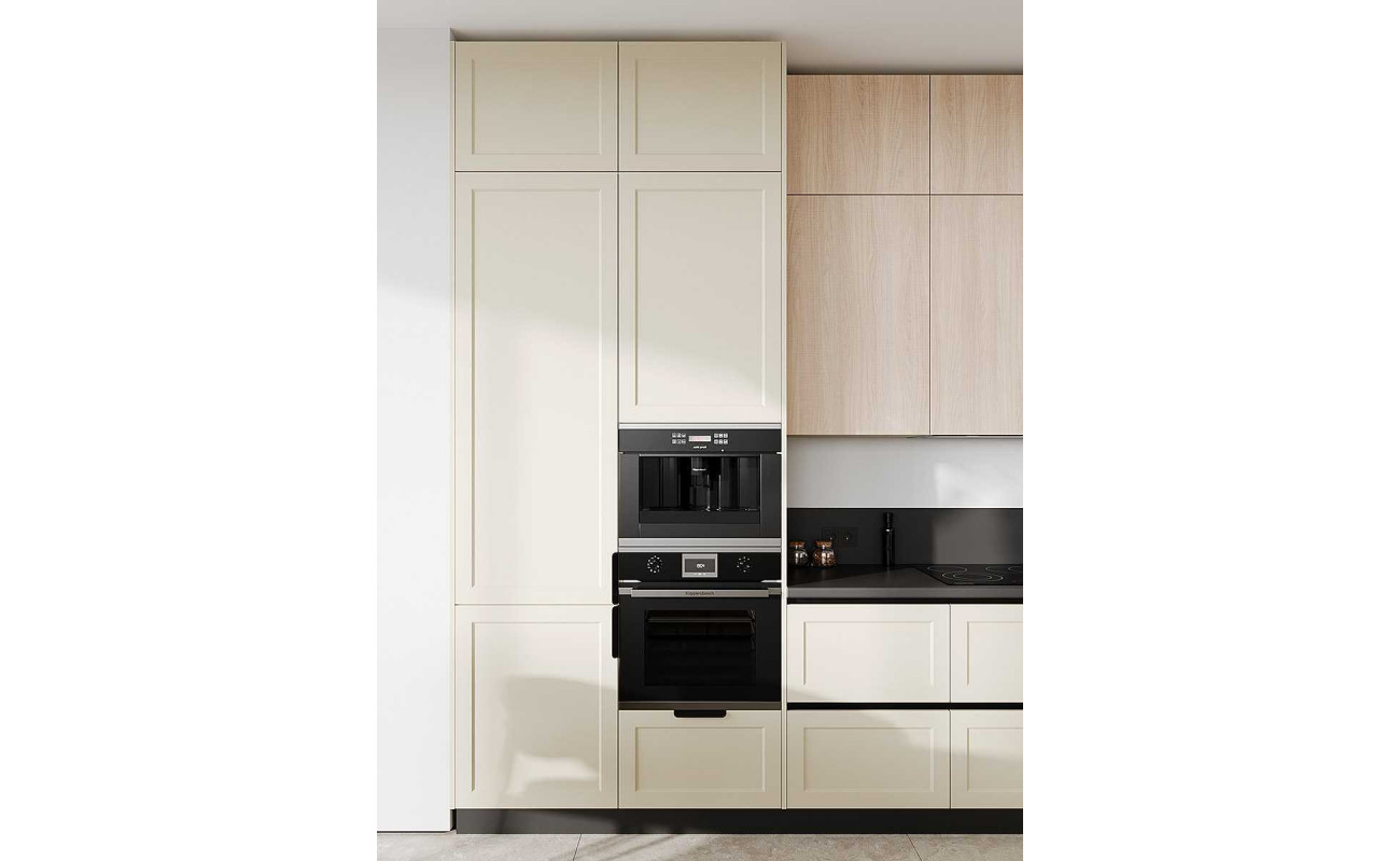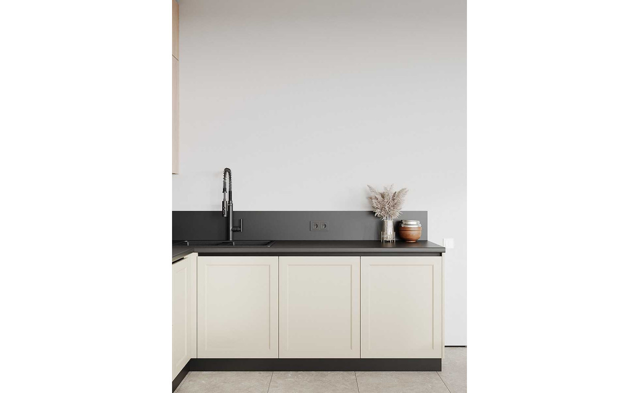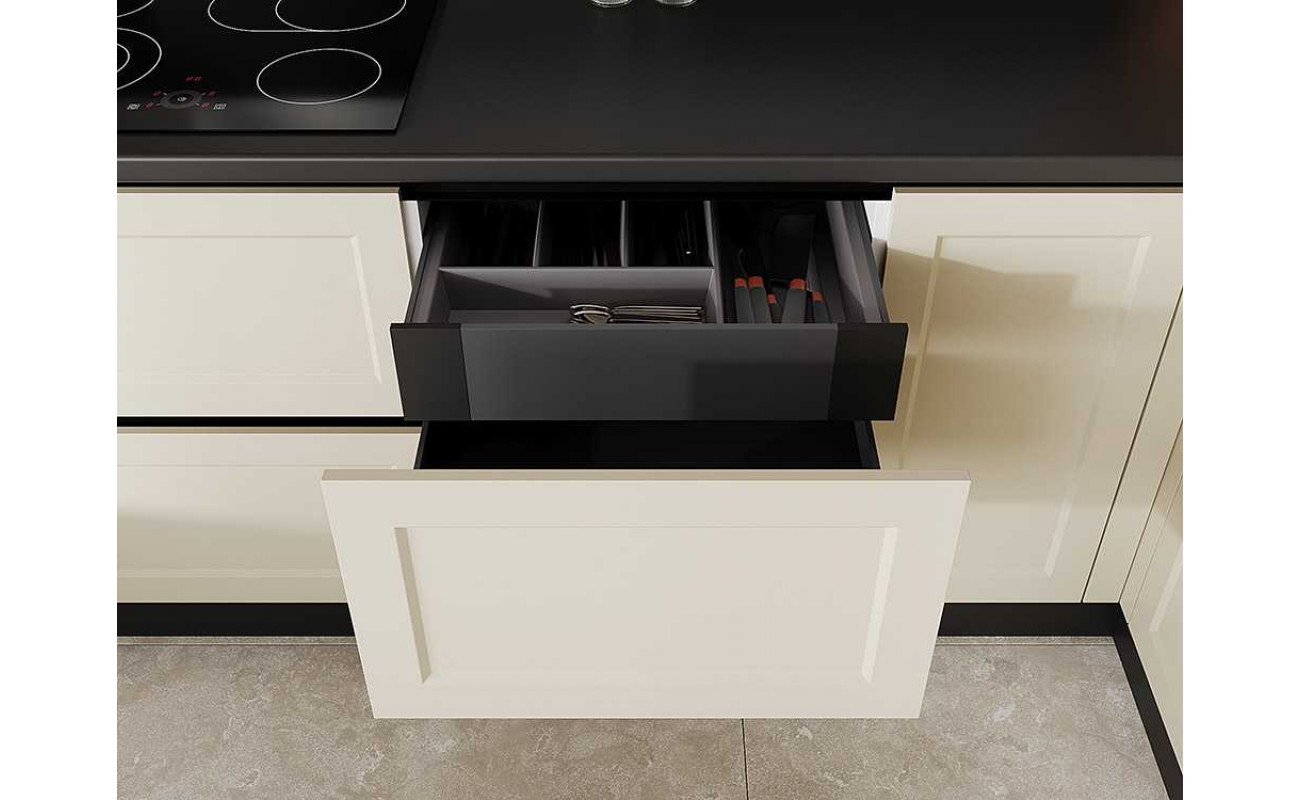 Современное минималистичное решение с механизмами скрытого монтажа и профилем вместо ручек