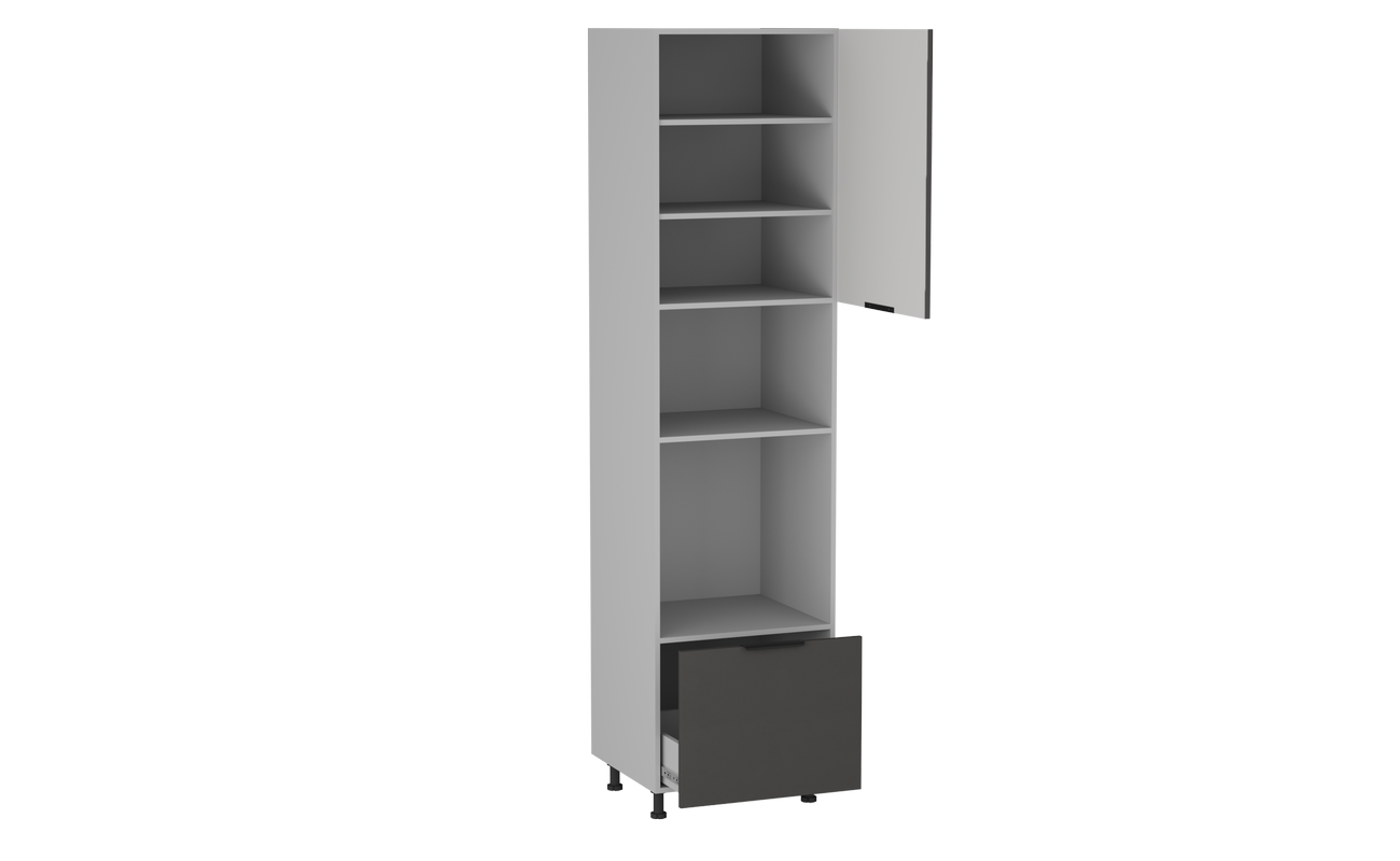 В пенале можно расположить микроволновую печь и встраиваемый духовой шкаф. В верхнем отделе полка, в нижнем ящик. Также, используя доп.опцию к ПГ-60, вы закрываете нишу и появляется дополнительное место хранения. Цоколь приобретается отдельно.
