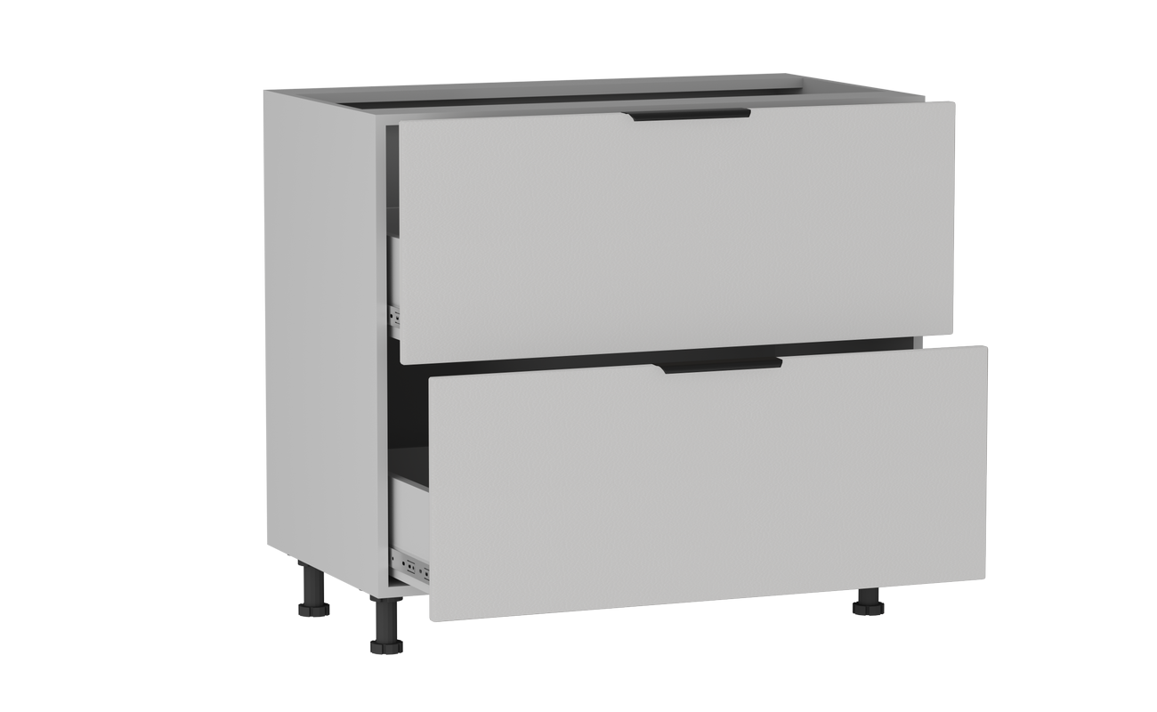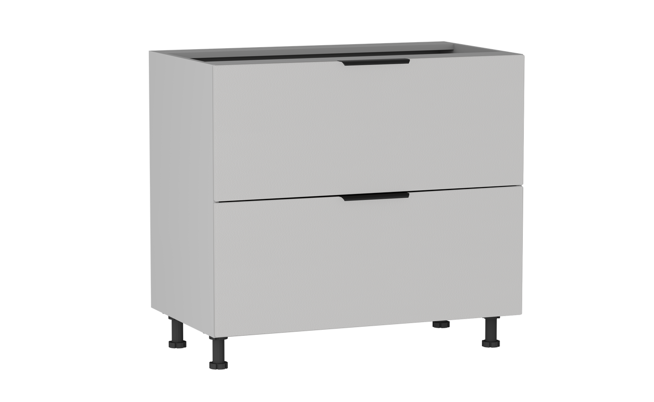 В столе расположены два ящика на шариковых направляющих. Столешница и цоколь приобретается отдельно.