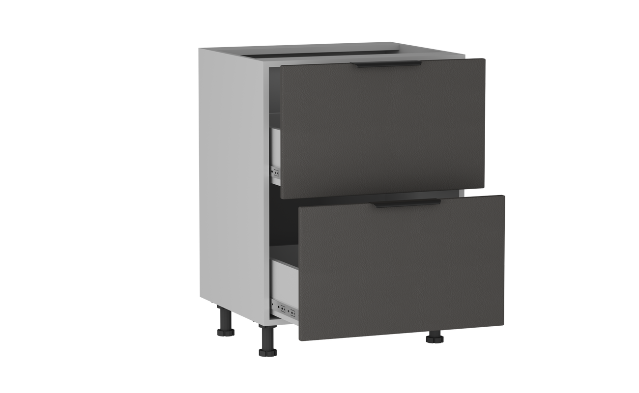 В столе расположены два ящика на шариковых направляющих. Столешница и цоколь приобретается отдельно.