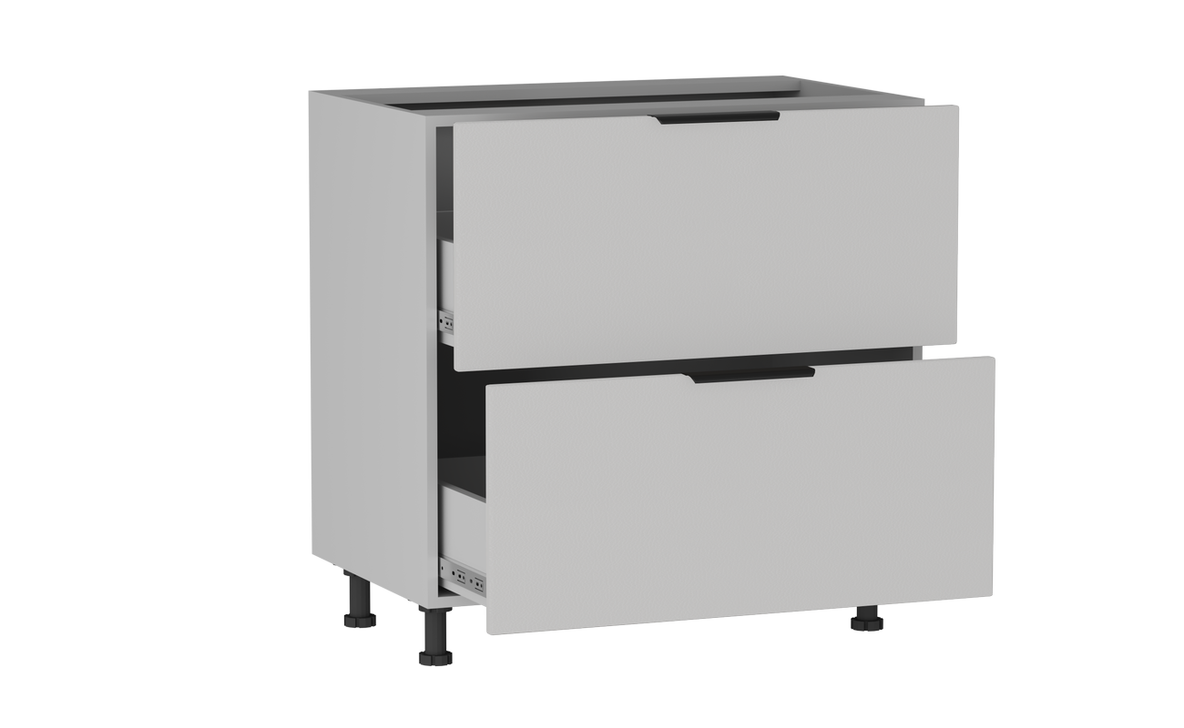 В столе расположены два ящика на шариковых направляющих. Столешница и цоколь приобретается отдельно.