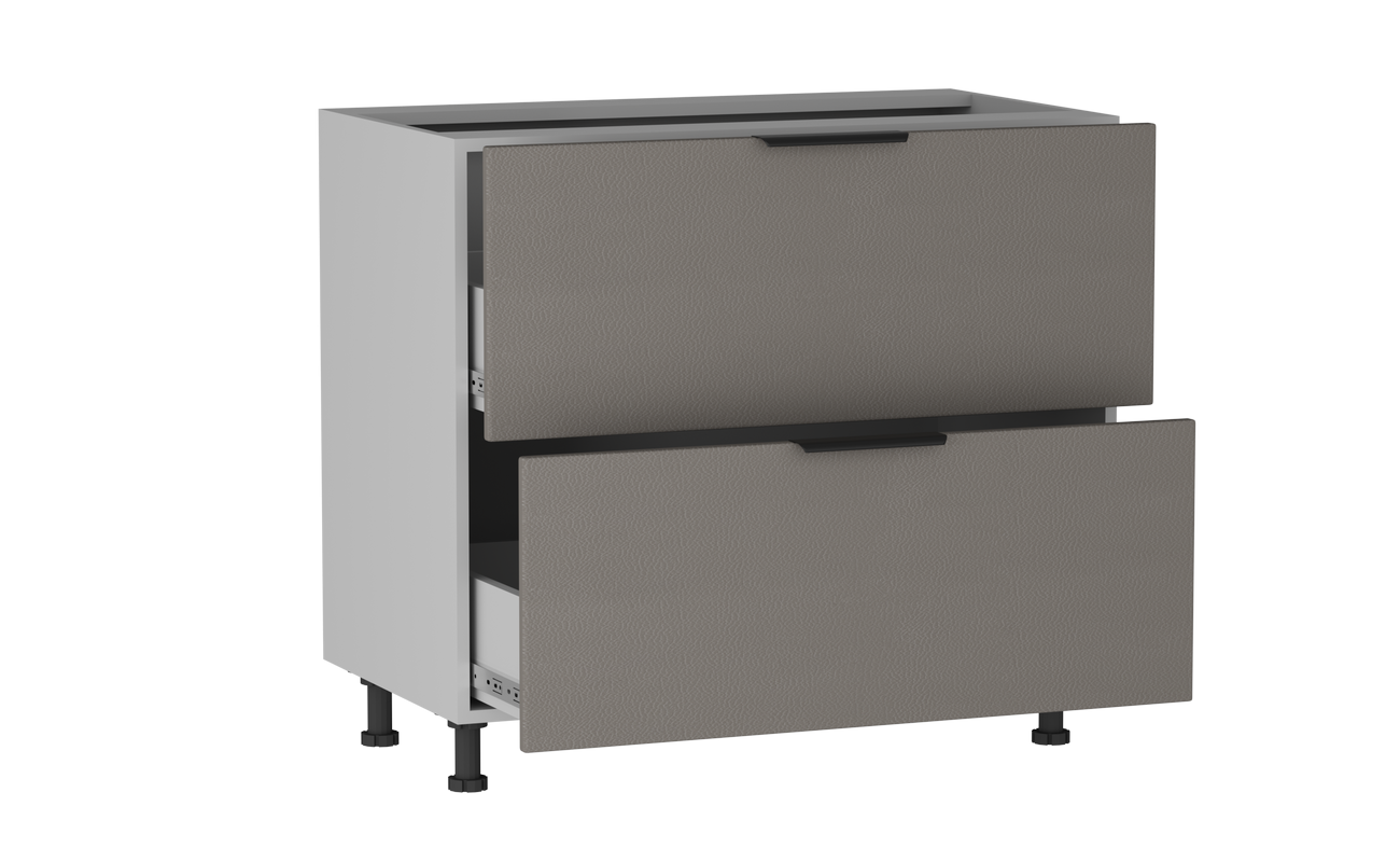 В столе расположены два ящика на шариковых направляющих. Столешница и цоколь приобретается отдельно.