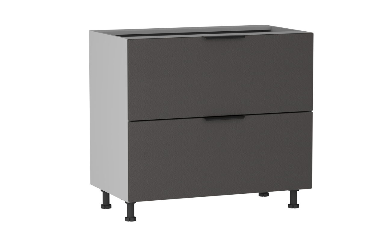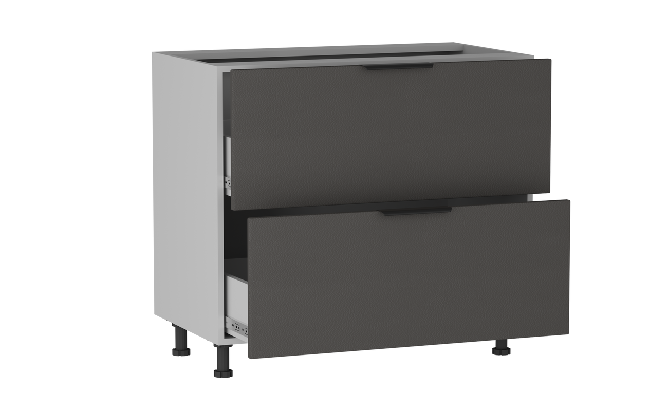 В столе расположены два ящика на шариковых направляющих. Столешница и цоколь приобретается отдельно.