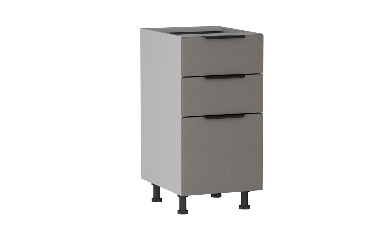 В столе расположены три ящика на шариковых направляющих. Столешница и цоколь приобретается отдельно.
