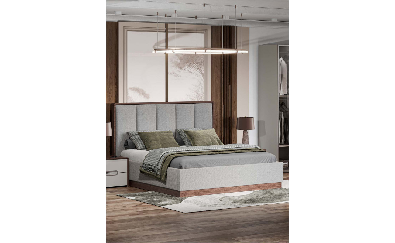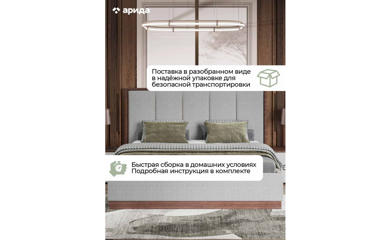 Кровать "Диана" — это тихая поэма в ткани и дереве. Уютное мягкое изголовье с вертикальной прострочкой и декором под дерево добавляют натуральности и тепла, сохраняя при этом современную эстетику. Изголовье создаёт ощущение комфорта и изысканности, идеально дополняя интерьер в нейтральных и природных тонах.