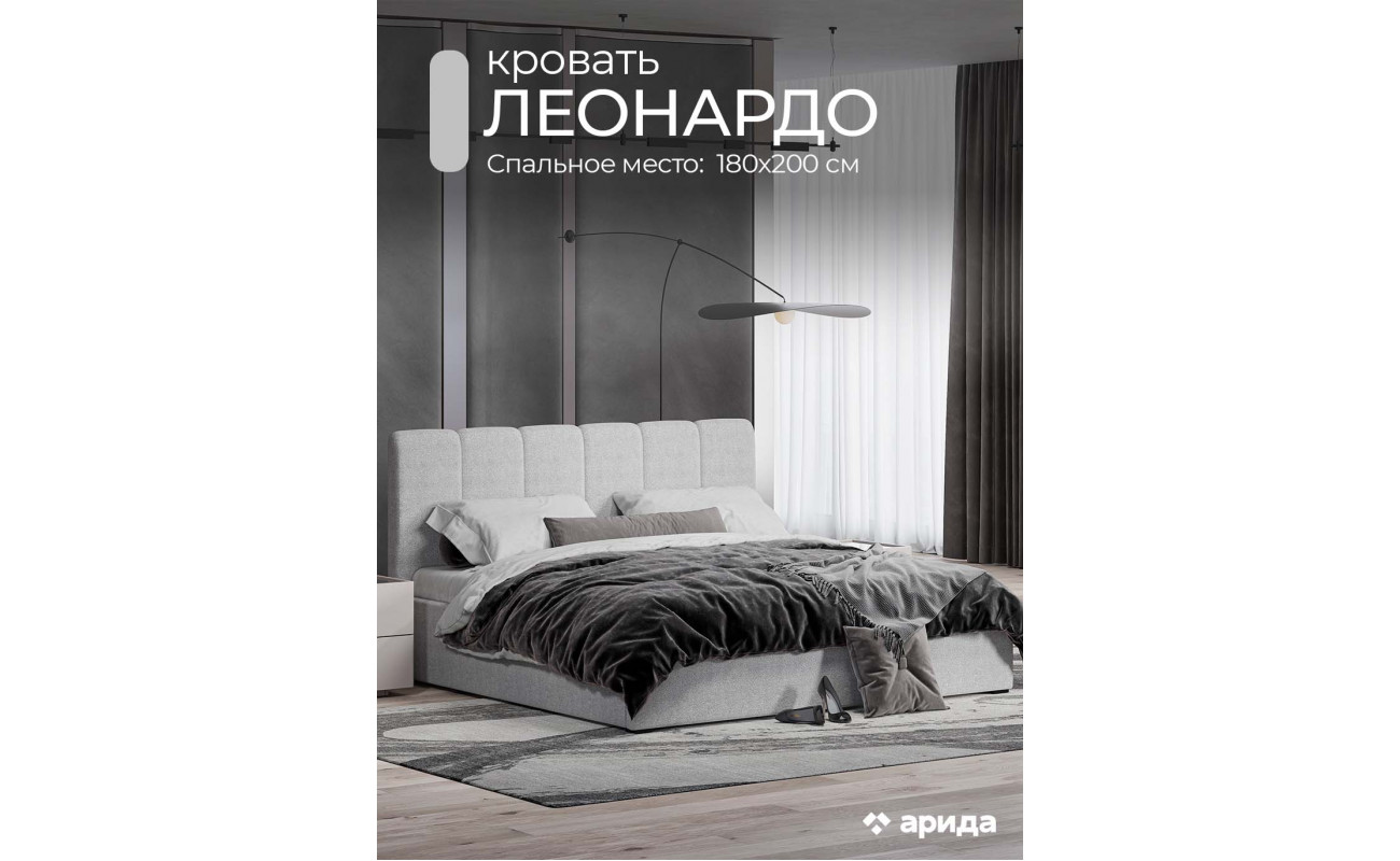 Кровать Леонардо Шенилл-букле серый 180х200 с малым изголовьем