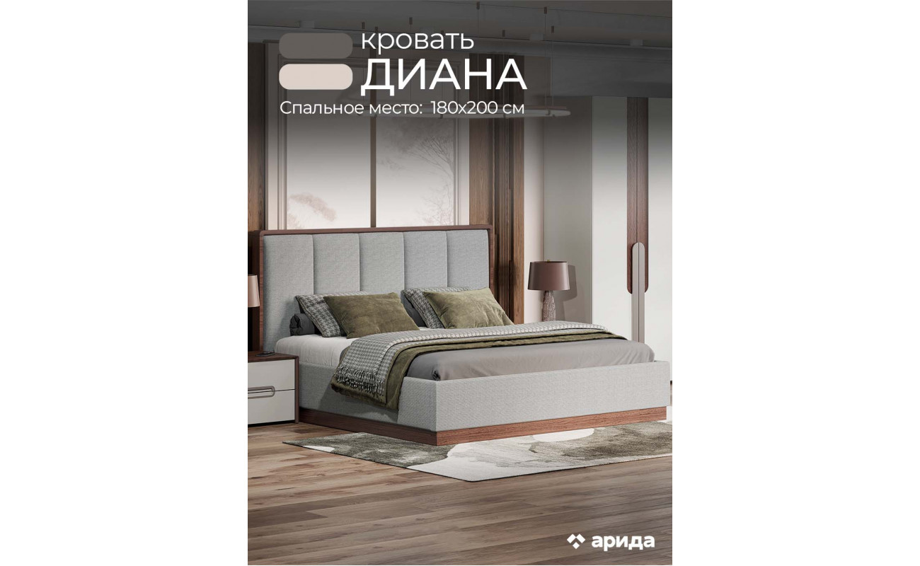 Кровать "Диана" — это тихая поэма в ткани и дереве. Уютное мягкое изголовье с вертикальной прострочкой и декором под дерево добавляют натуральности и тепла, сохраняя при этом современную эстетику. Изголовье создаёт ощущение комфорта и изысканности, идеально дополняя интерьер в нейтральных и природных тонах.