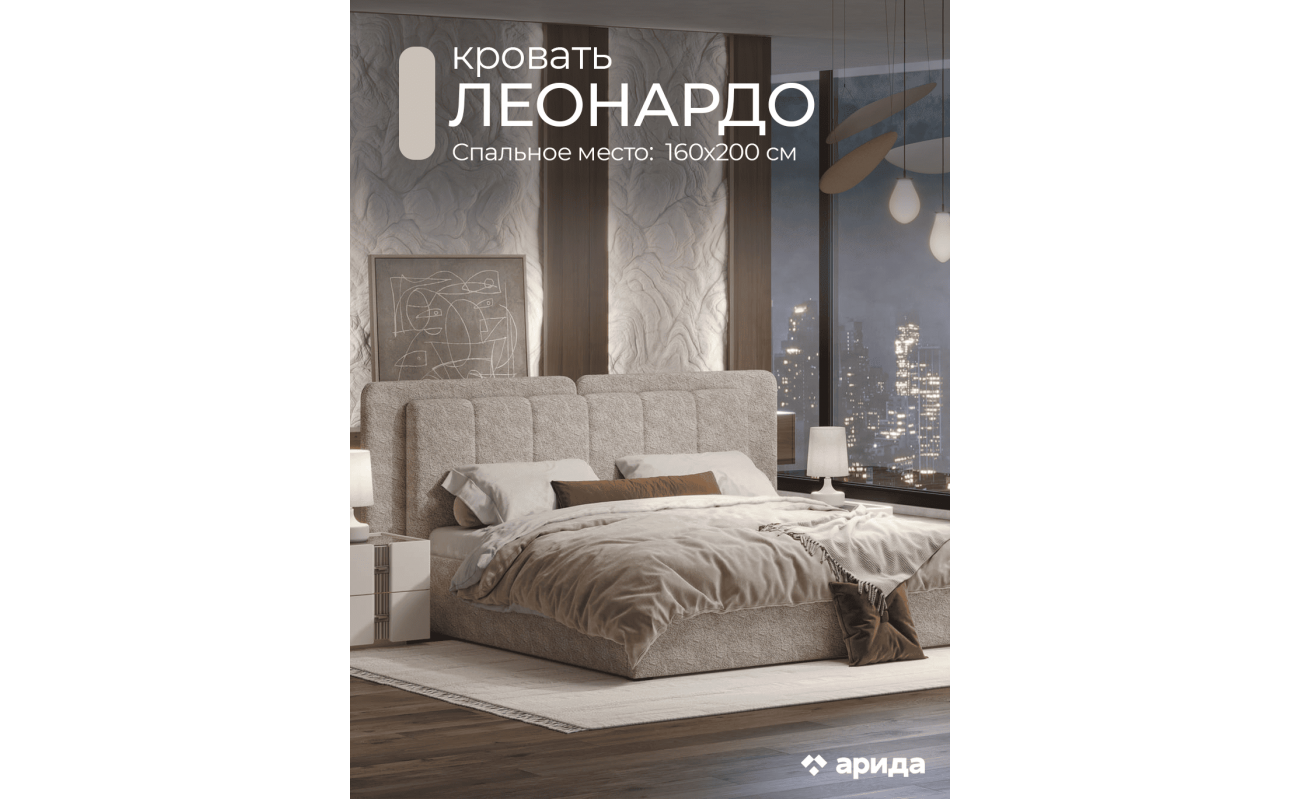 Кровать Леонардо Шенилл-букле бежевый 160х200 с малым и большим изголовьем