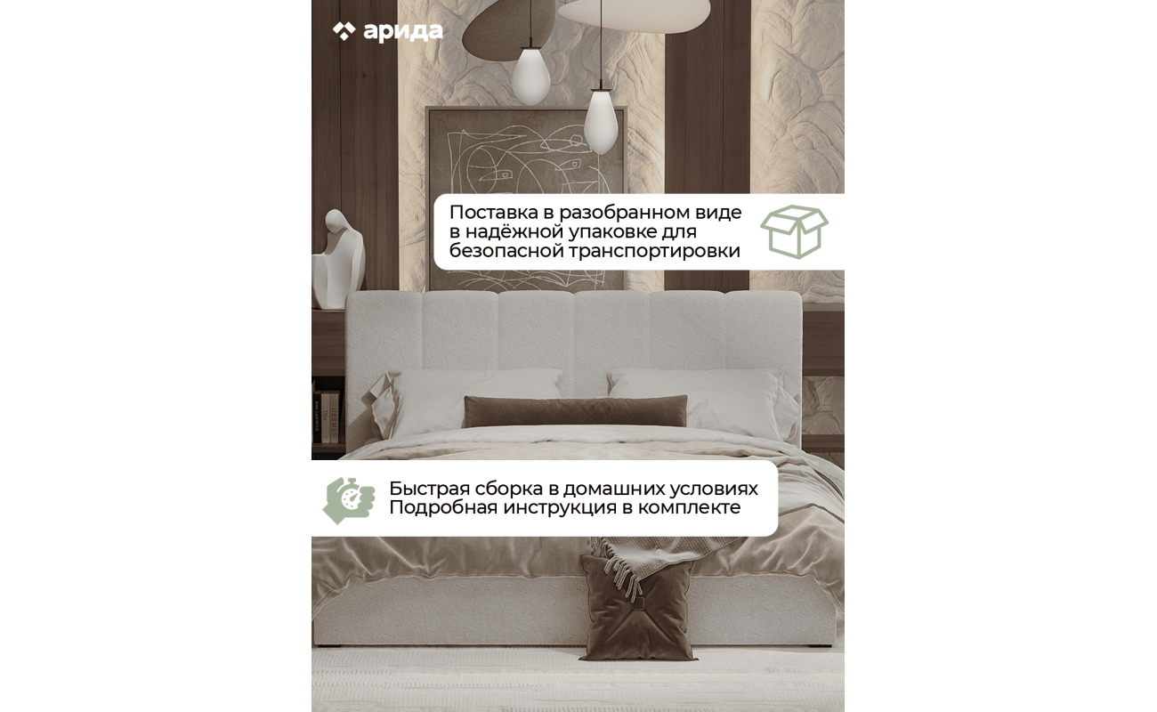 На складе Код товара: 44887 Кровать Леонардо Шенилл-букле бежевый 180х200 с малым и большим изголовьем74.175 ₽