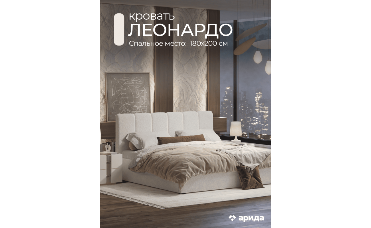 Технические характеристики Кровать Леонардо Шенилл-букле бежевый 180х200 с малым изголовьем