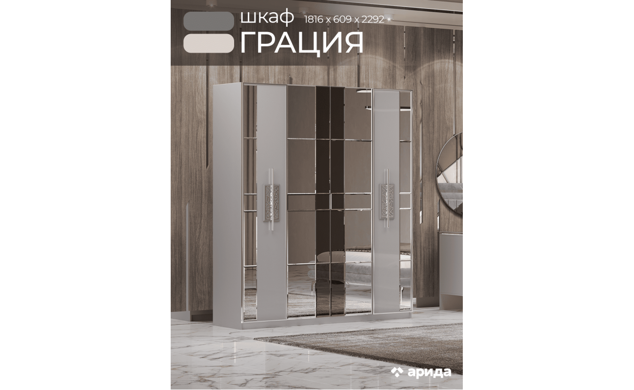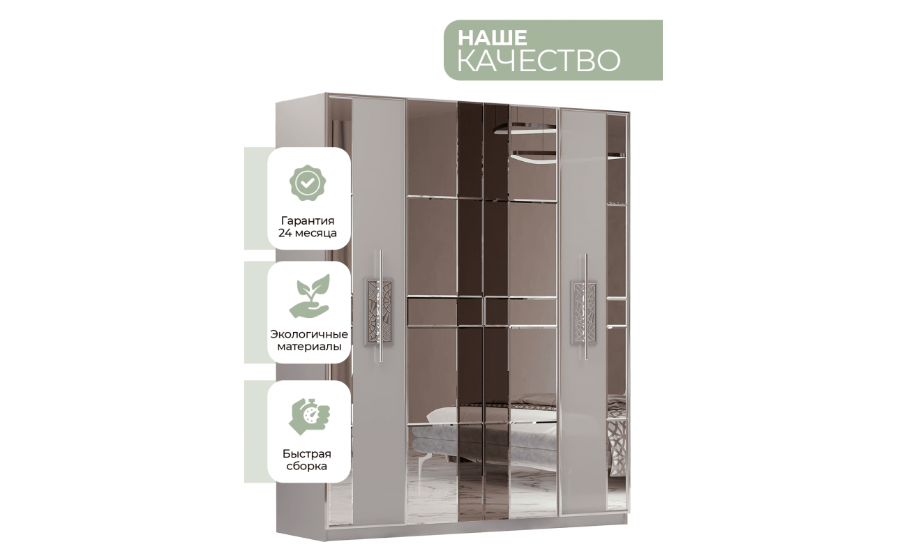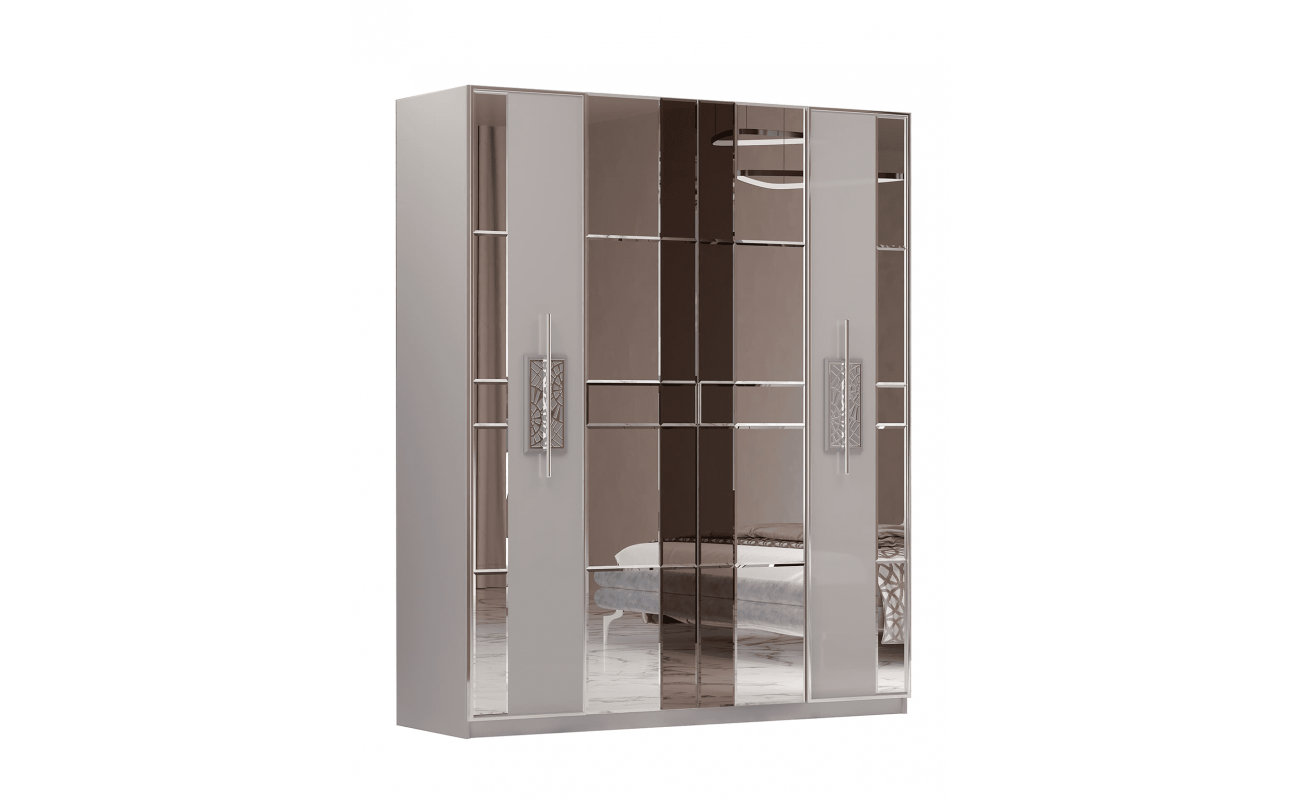 Шкаф 4-дверный "Грация" благодаря обилию зеркальных элементов и золотых или серебряных деталей придает изысканный шарм вашей спальне.