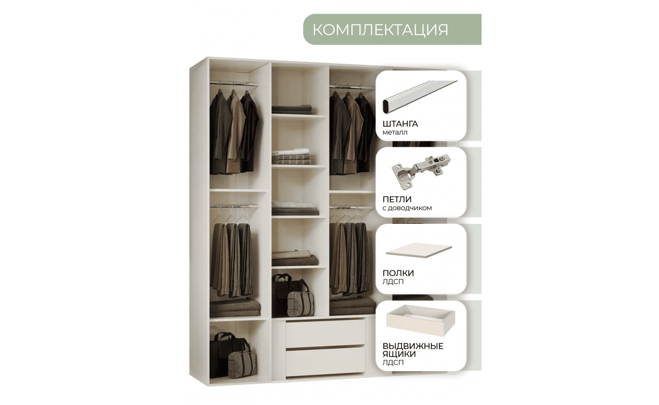 | Материал фасада | ЛДСП толщиной 16 мм (ламинированная древесно-стружечная плита, класс E1 - безопасен для здоровья) |
