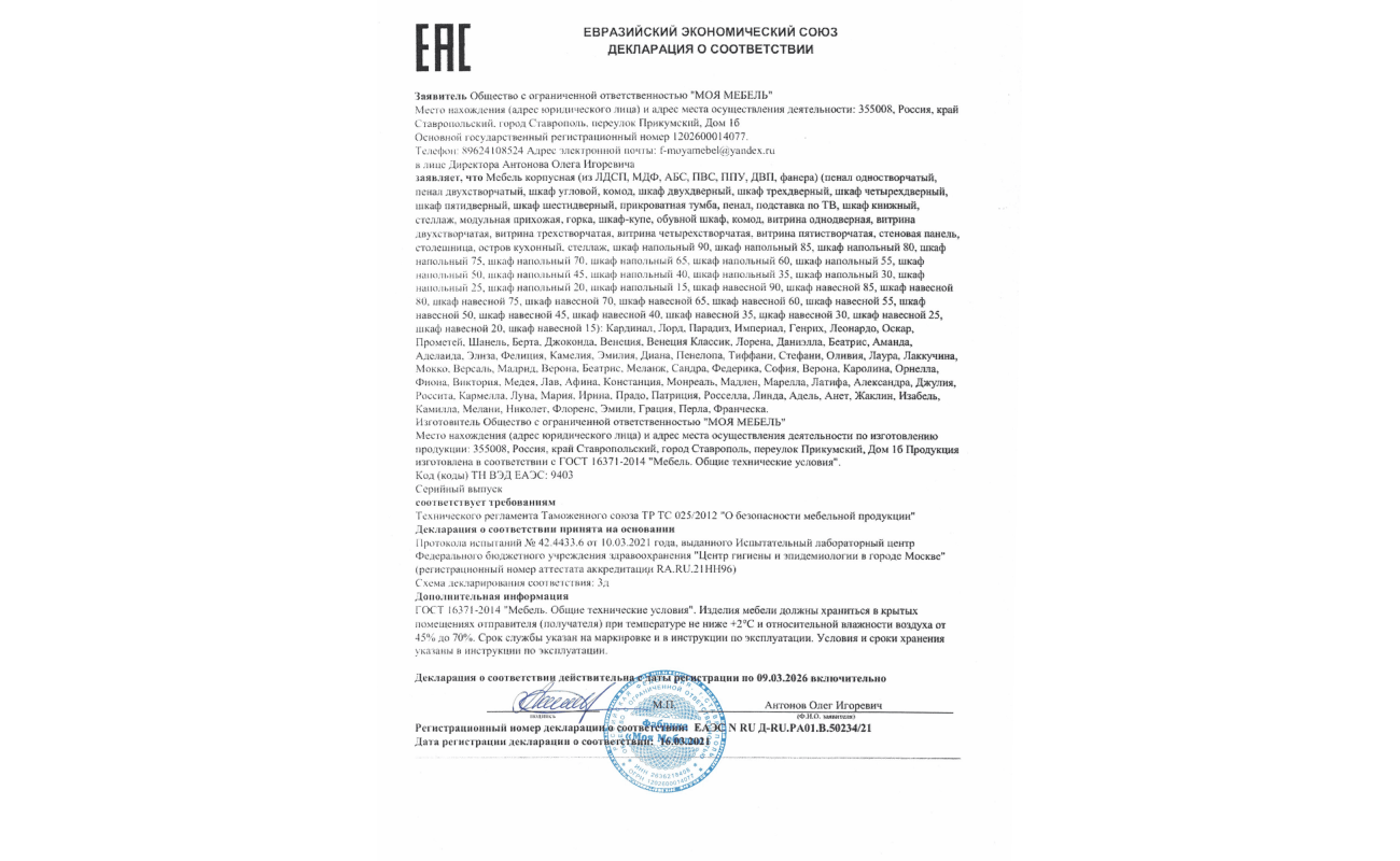 | Материал полок | ЛДСП толщиной 16 мм (ламинированная древесно-стружечная плита, класс E1 - безопасен для здоровья) |
