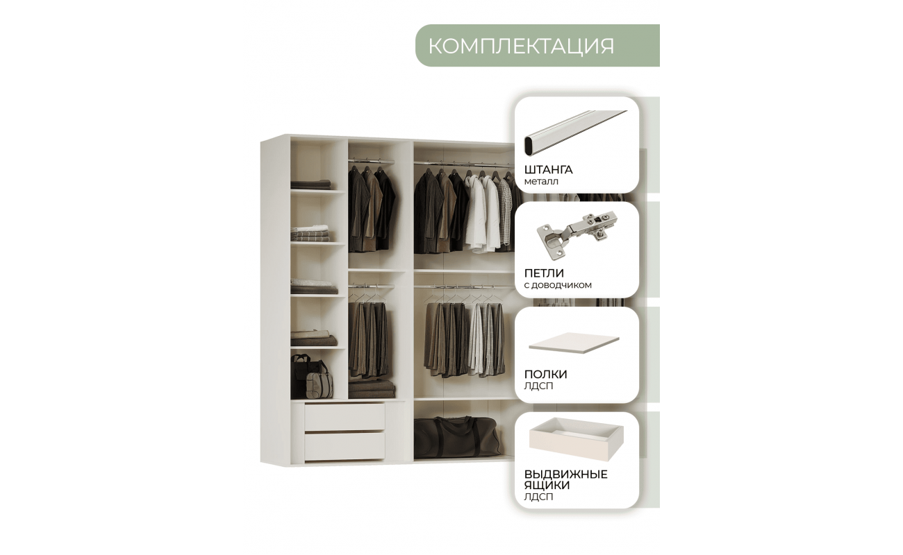 | ЦветБежевый | Материал корпусаЛДСП толщиной 16 мм (ламинированная древесно-стружечная плита, класс E1 - безопасен для здоровья). | Материал фасадаЛДСП толщиной 16 мм (ламинированная древесно-стружечная плита, класс E1 - безопасен для здоровья) |