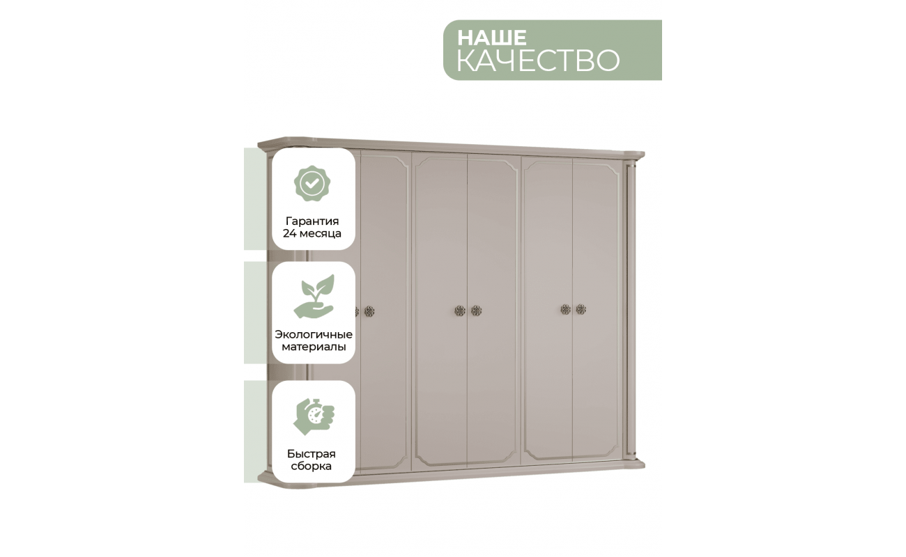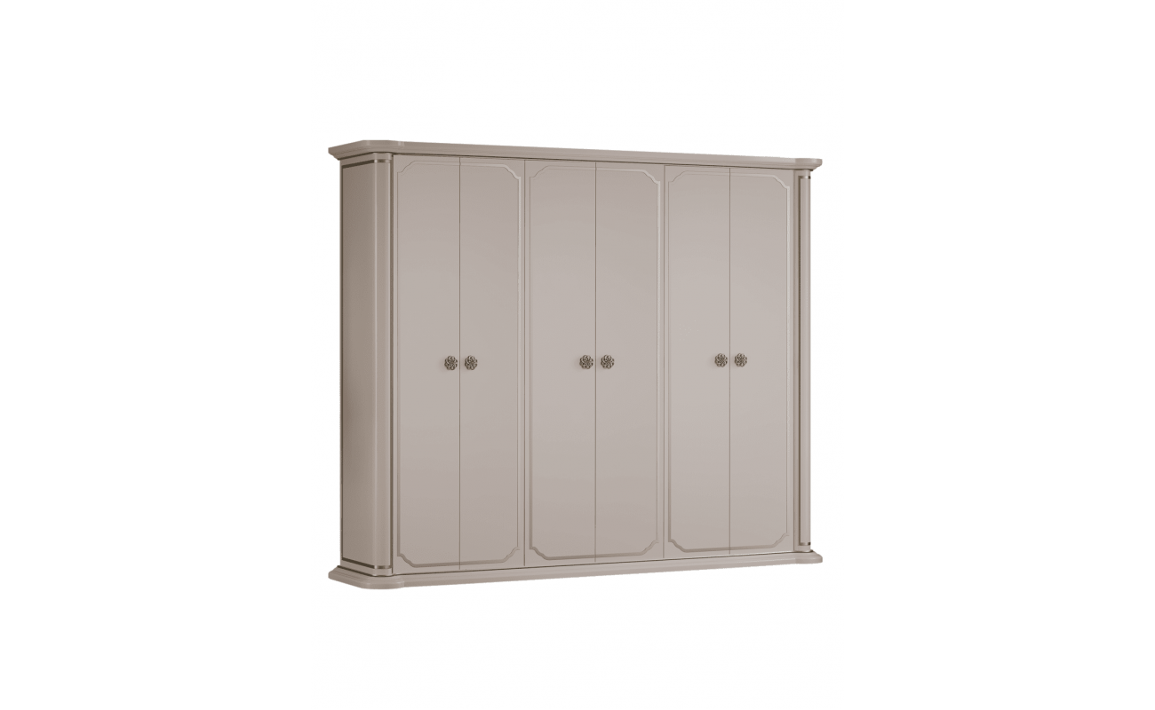 Вместительный 6-дверный шкаф "Мария" декорирован на фасадах и боковых стенках объемным рисунком, прекрасно сочетается с интерьером любых стилей.