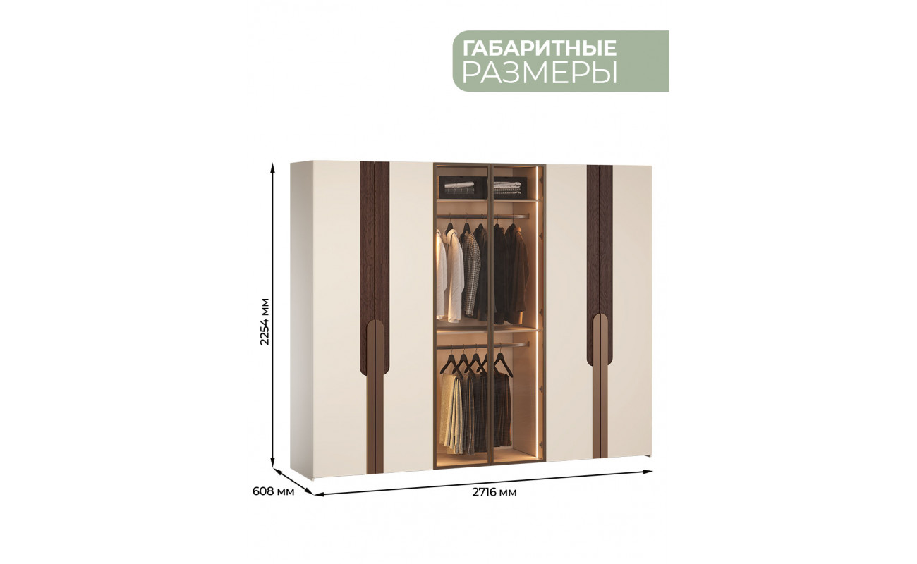 | Размеры(ШxГxВ)272х61х225 см | Ширина2716 мм | Глубина608 мм |