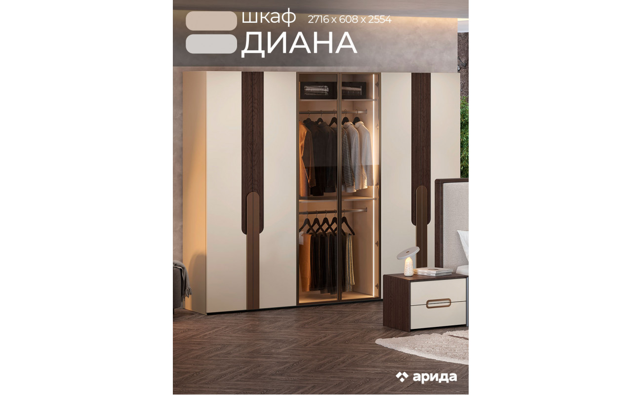 Шкаф "Диана" — это стильное и функциональное решение для вашего интерьера, сочетающее современные материалы и изысканный дизайн.
