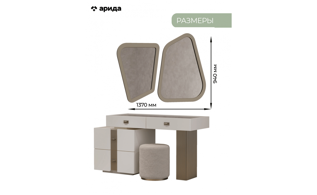 | Туалетный стол + пуф | 1435х525х767 мм |