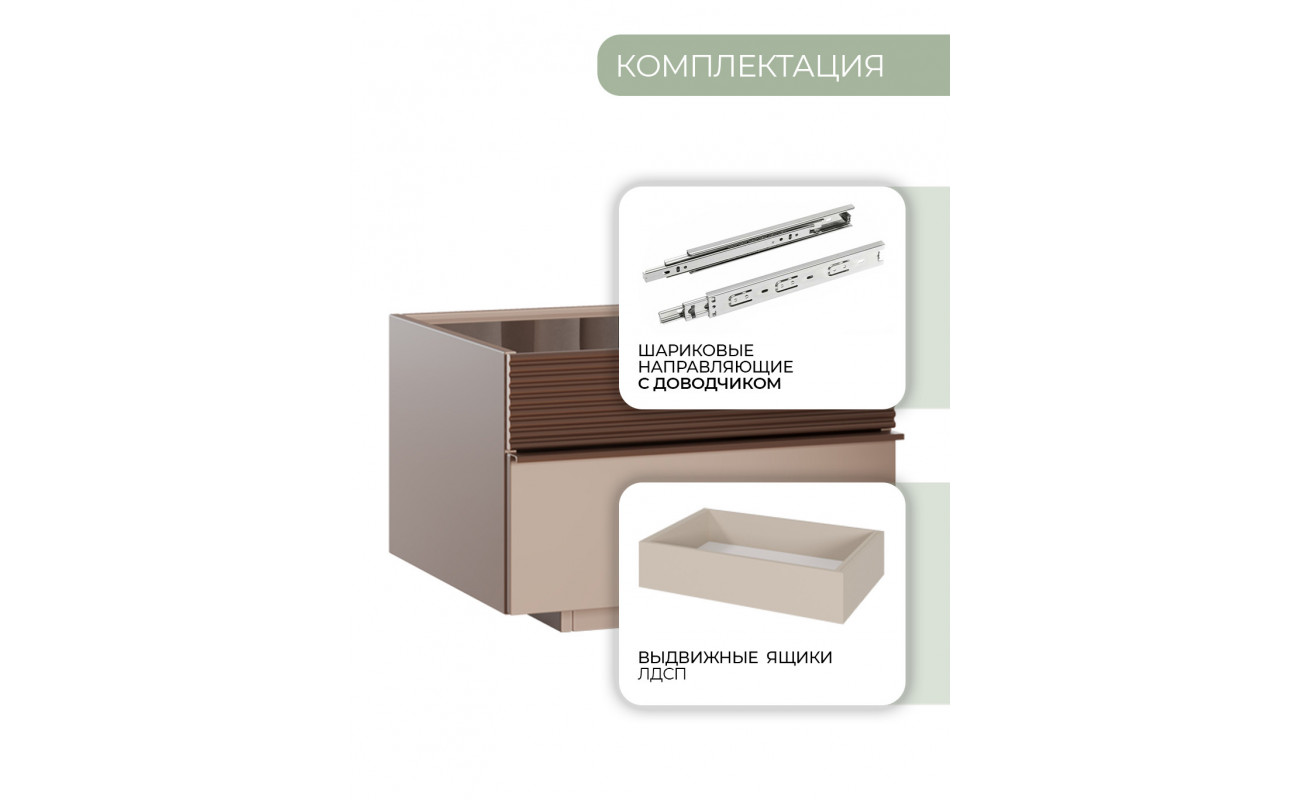 | Фурнитура | Выдвижные ящики оснащены шариковым выдвижным механизмом |