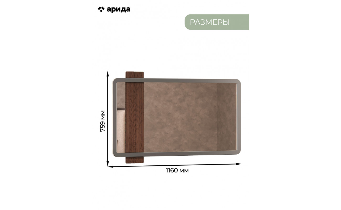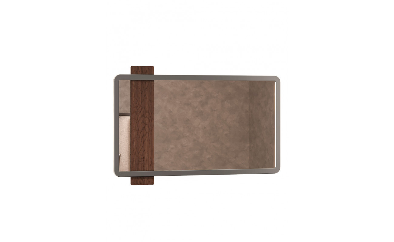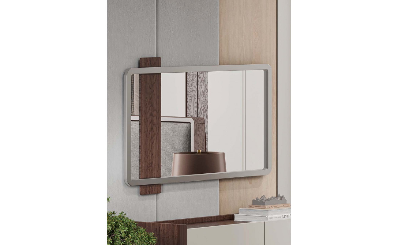 Зеркало "Диана" оформлено в рамке со скруглёнными краями и вертикальным декором под венге. Это добавляет изделию изысканности и гармонично сочетается с мягким изголовьем кровати, создавая единый, тёплый и утончённый ансамбль.