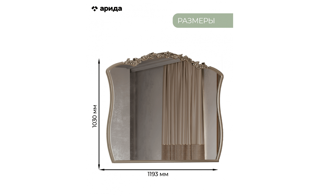 Зеркало к комоду "Мария" с объемным цветочным орнаментом и поталью в цвете "холодное золото".