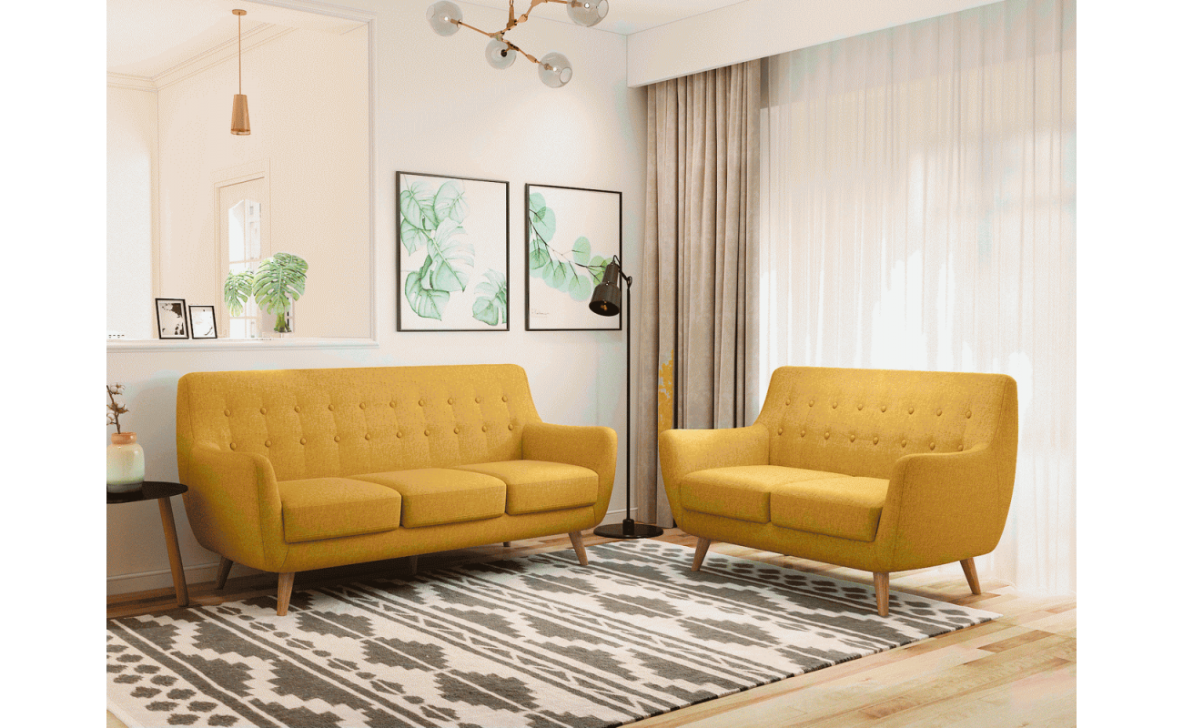 Диван Picasso двухместный горчичный, рогожка