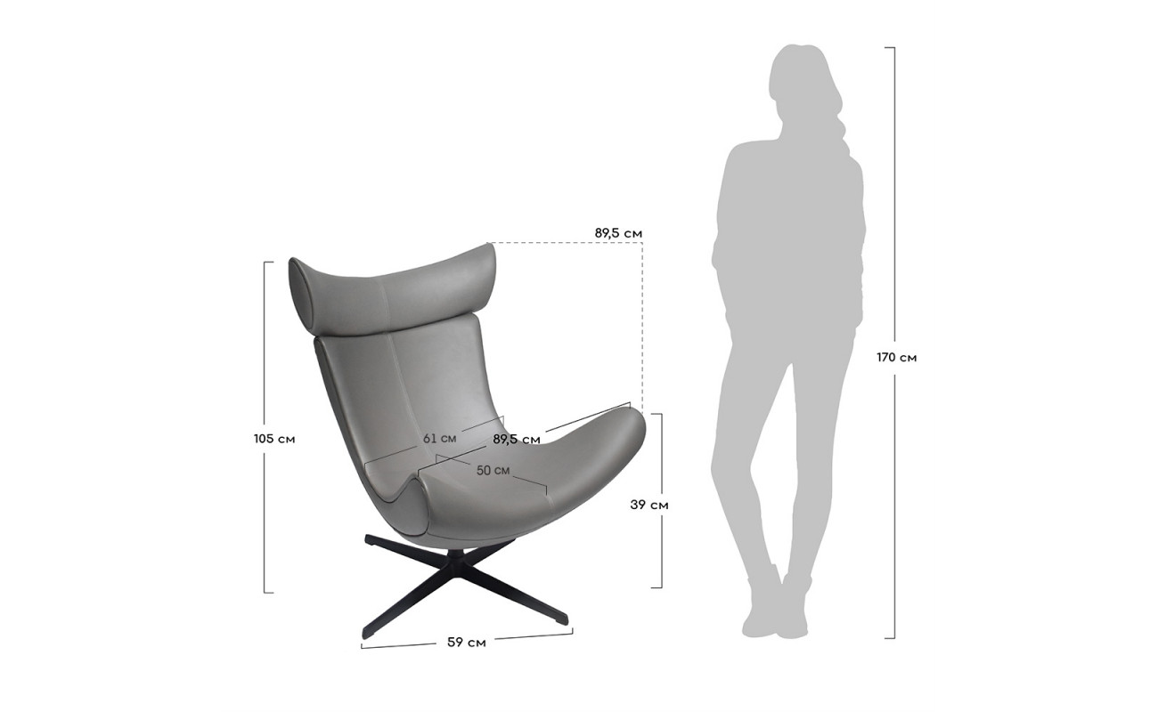 Высокая изогнутая спинка и приподнятое вверх сиденье словно приглашают вас присесть и самостоятельно оценить непревзойденный комфорт кресла Toro.
