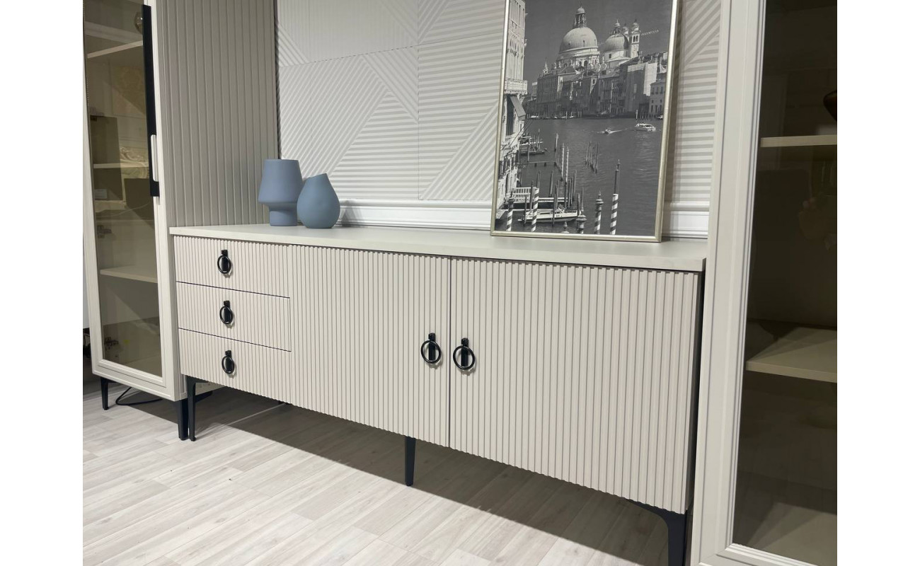 Сдержанный цвет, простые формы, чёрные акценты и продуманная фрезеровка боков витрин — каждый элемент коллекции работает на стиль и удобство