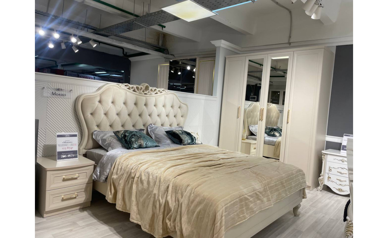 МОККО — это спальня, которая погрузит вас в атмосферу безмятежности и спокойствия. Стильный образ создается акцентами на модную текстуру и изящный декор.
