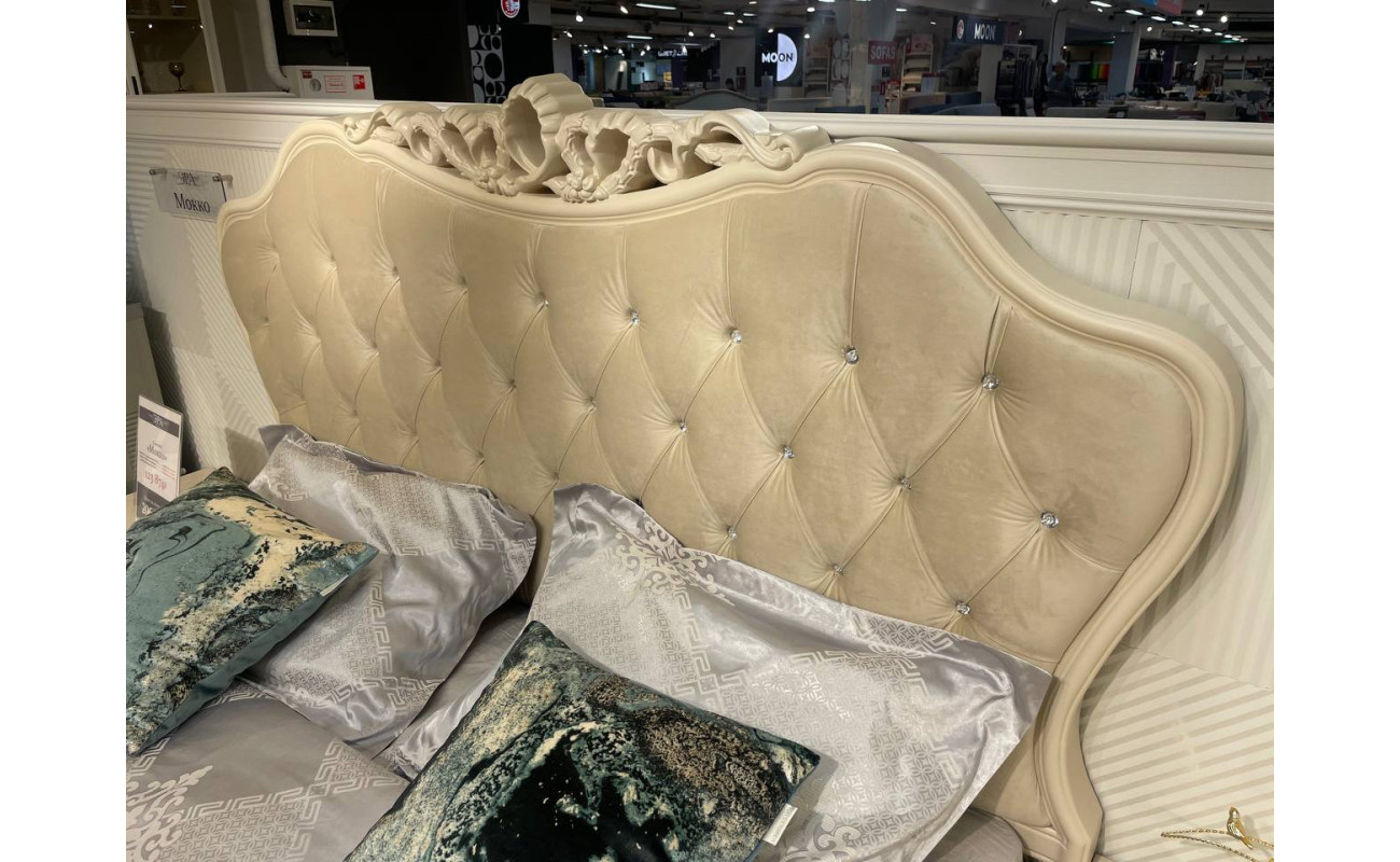 | Материал изголовья | Велюр крем, с каретной стяжкой и кристаллами. Изготавливается из цельной плиты ЛДСП и приходит в сборе |