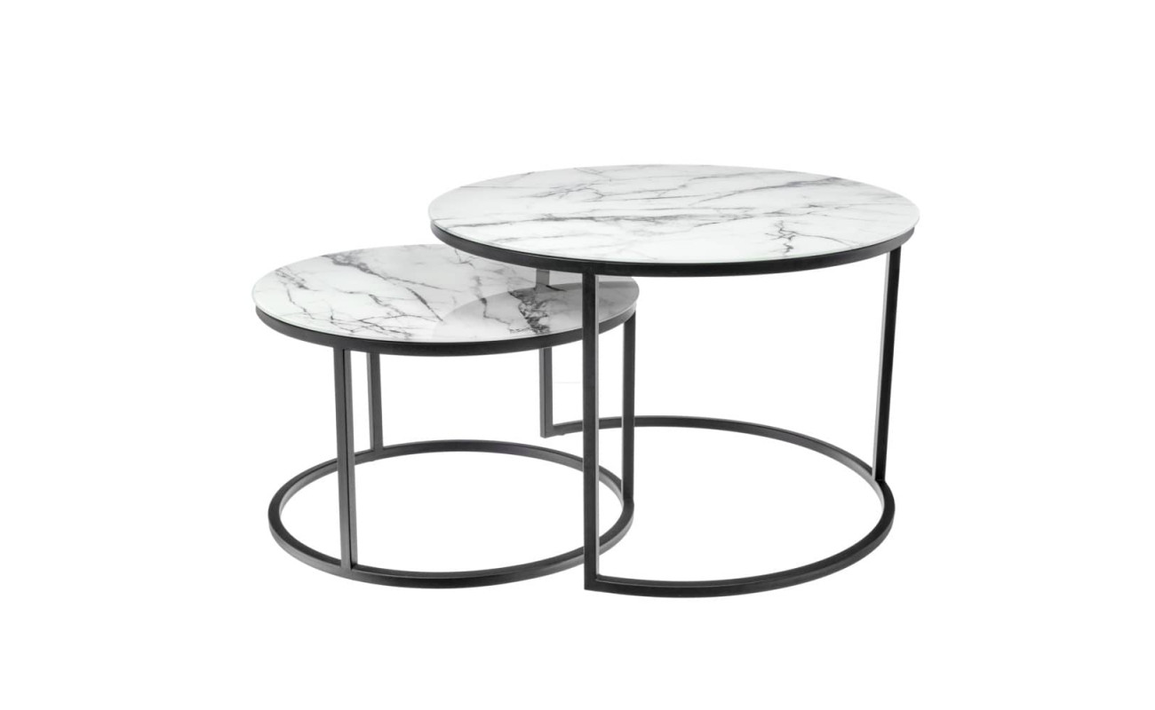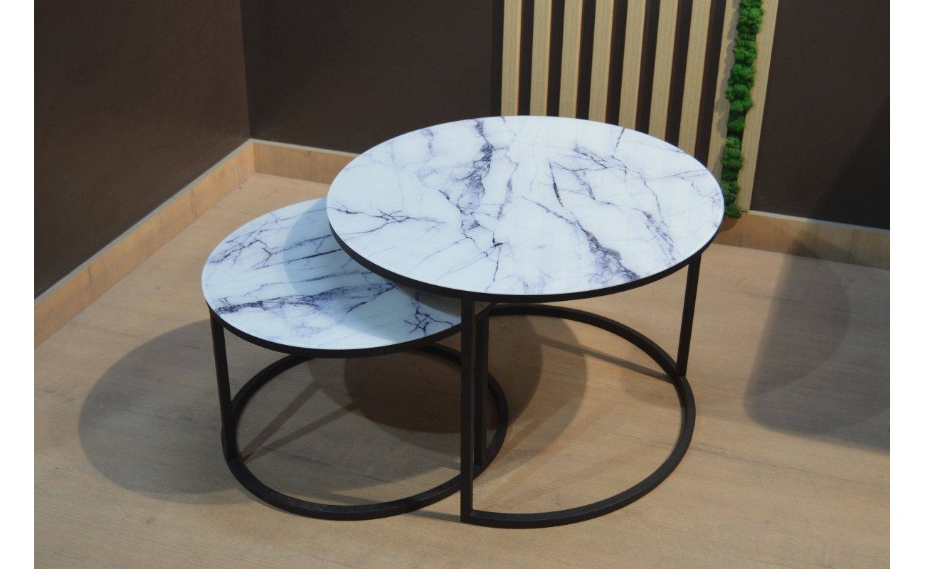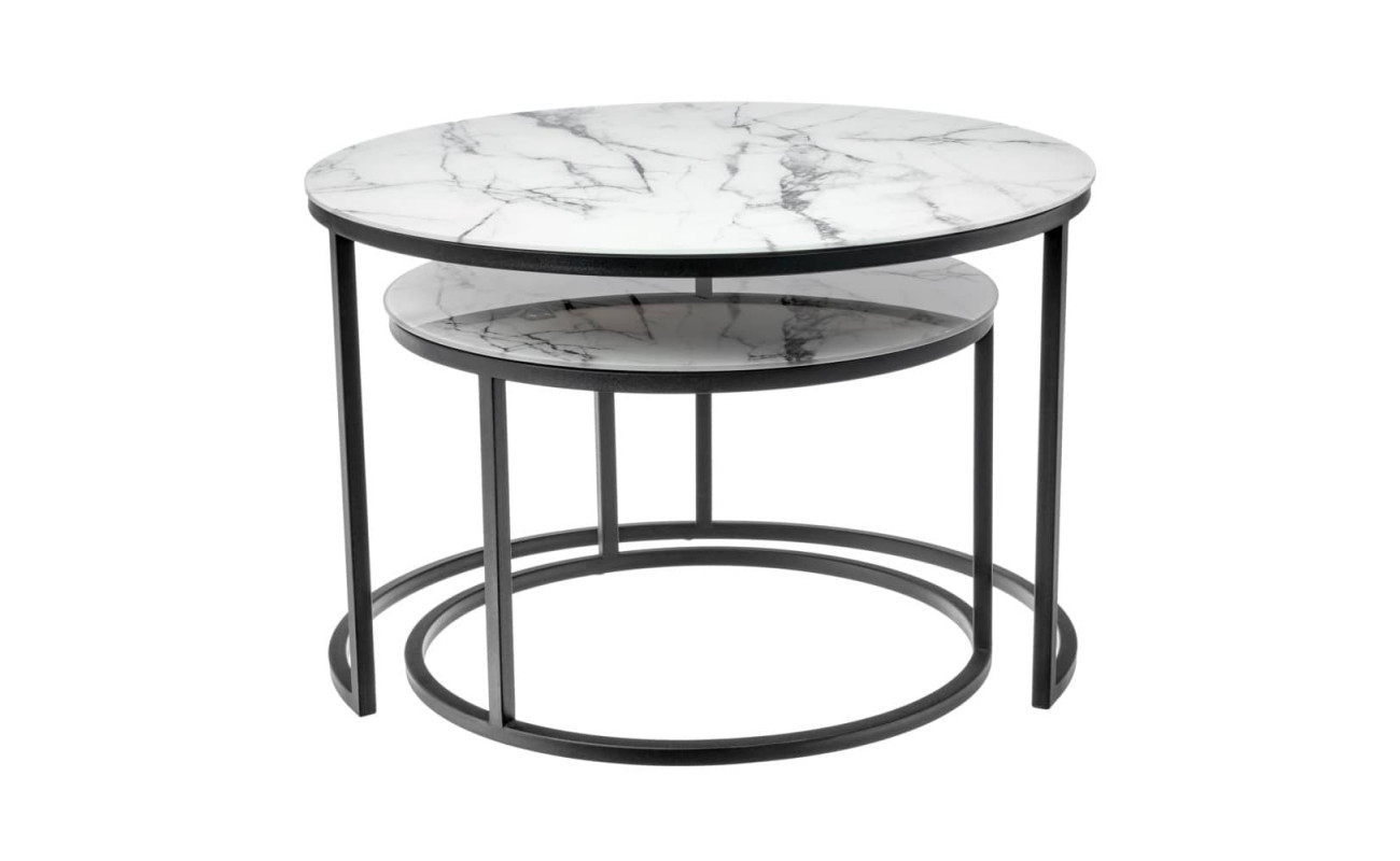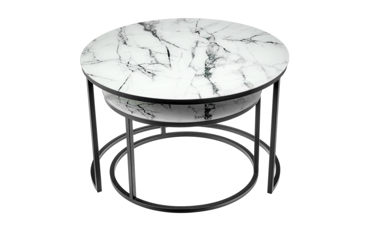 Набор кофейных столиков Tango белый мрамор с черными ножками