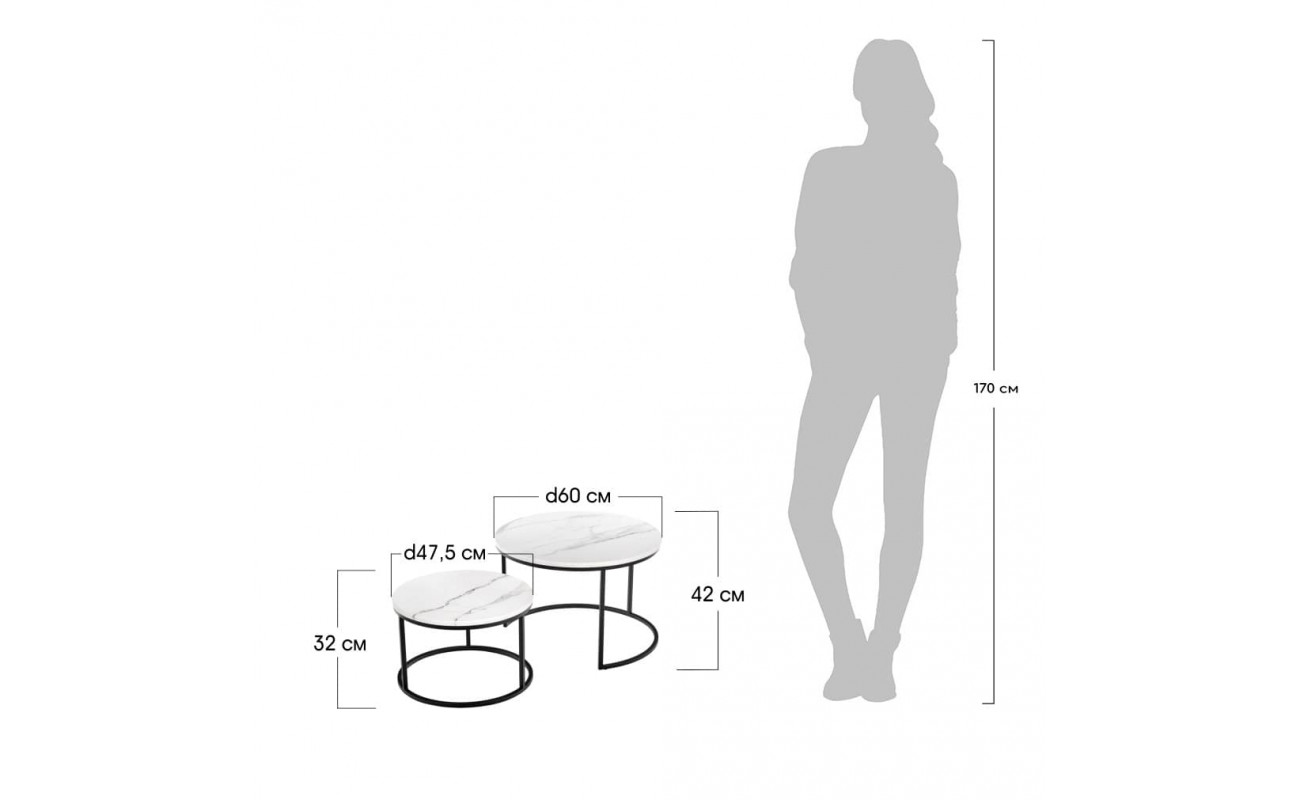 Технические характеристики Набор кофейных столиков Tango белый мрамор с черными ножками