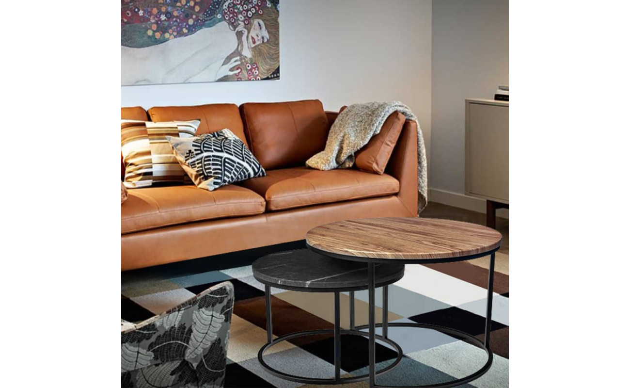 Элегантная пара кофейных столиков Tango станет изящным дополнением любой гостинной или даже спальни. Рисунок на столешнице, выполенной из закалённого стекла с имитацией натурального камня, завораживает и притягивает взгляд. Столики можно расположить парой или расставить по отдельности. Чёрные ножки позволят вписать этот набор в любой интерьер. Размер большого столика: диам.60х41см. Размер маленького столика: диам.47,5х31см