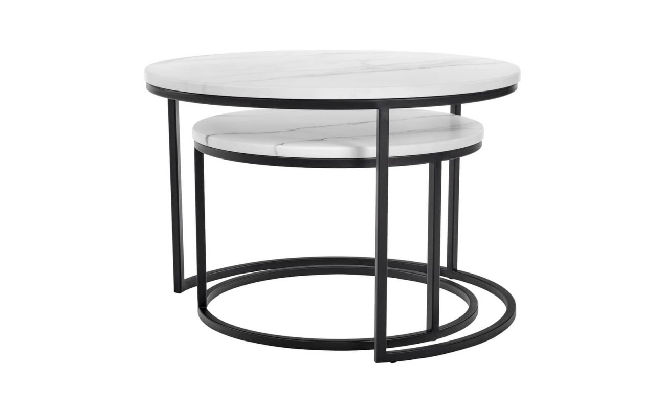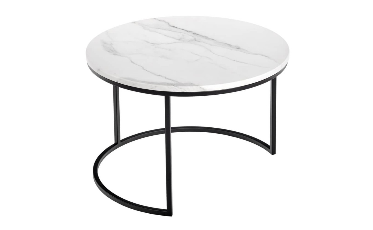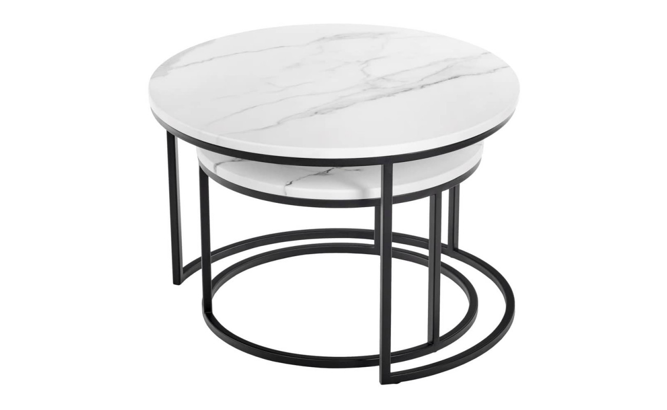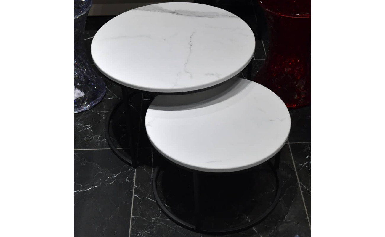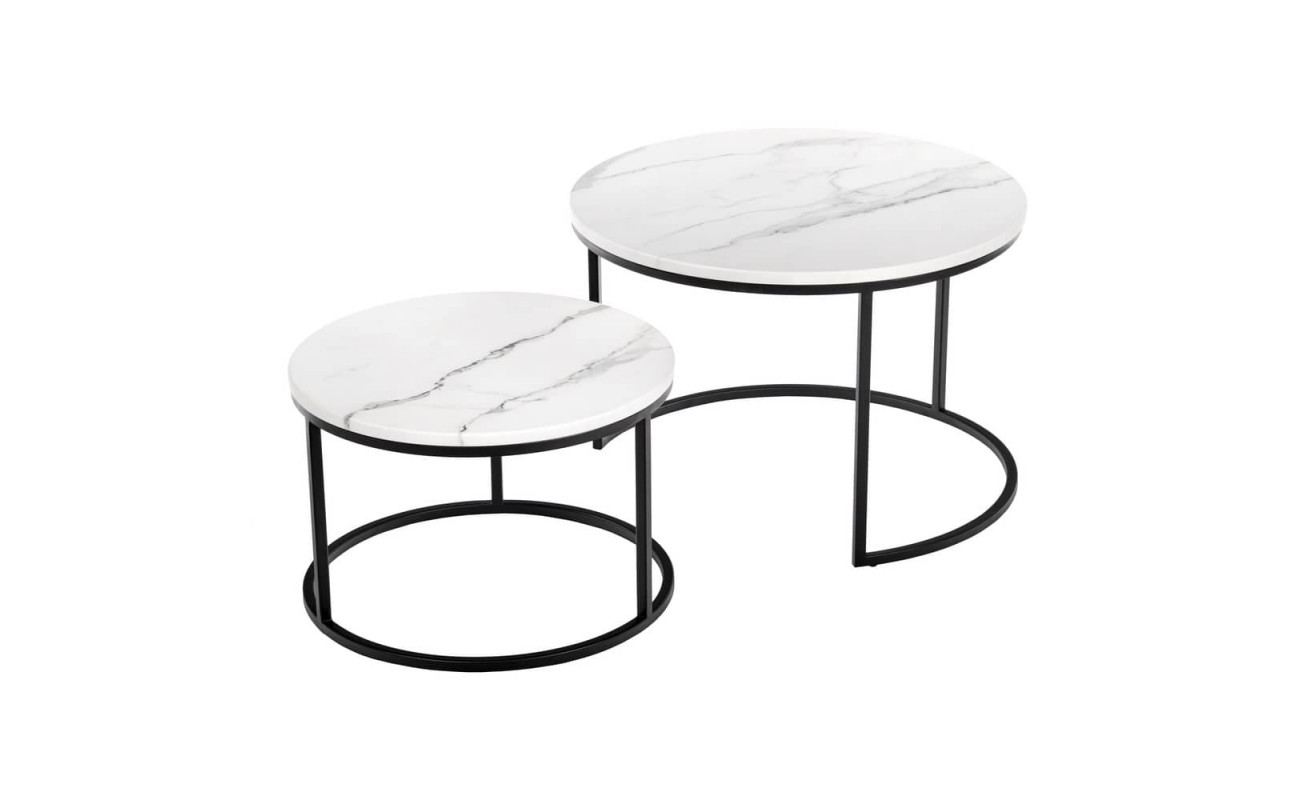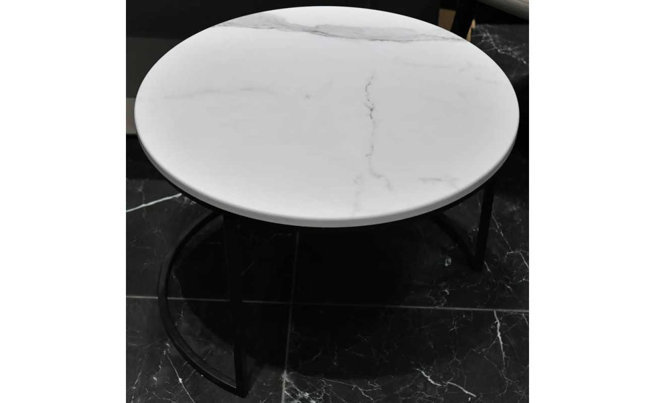 Набор кофейных столиков Tango белый мрамор с чёрными ножками, 2шт