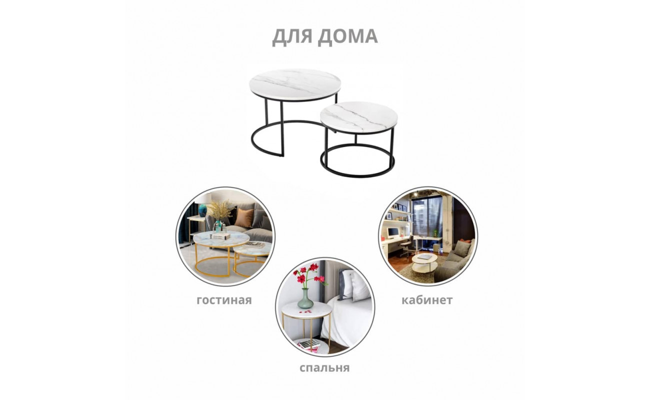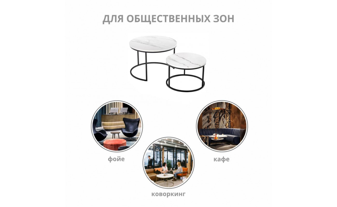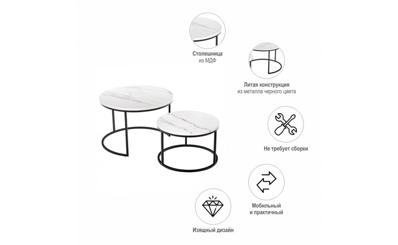 Технические характеристики Набор кофейных столиков Tango белый мрамор с чёрными ножками, 2шт