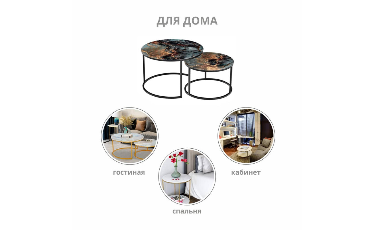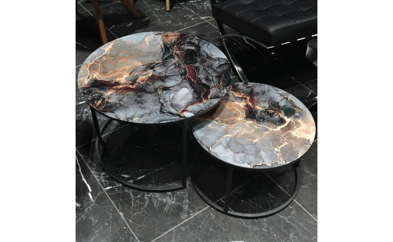 Набор кофейных столиков Tango космический с чёрными ножками, 2шт