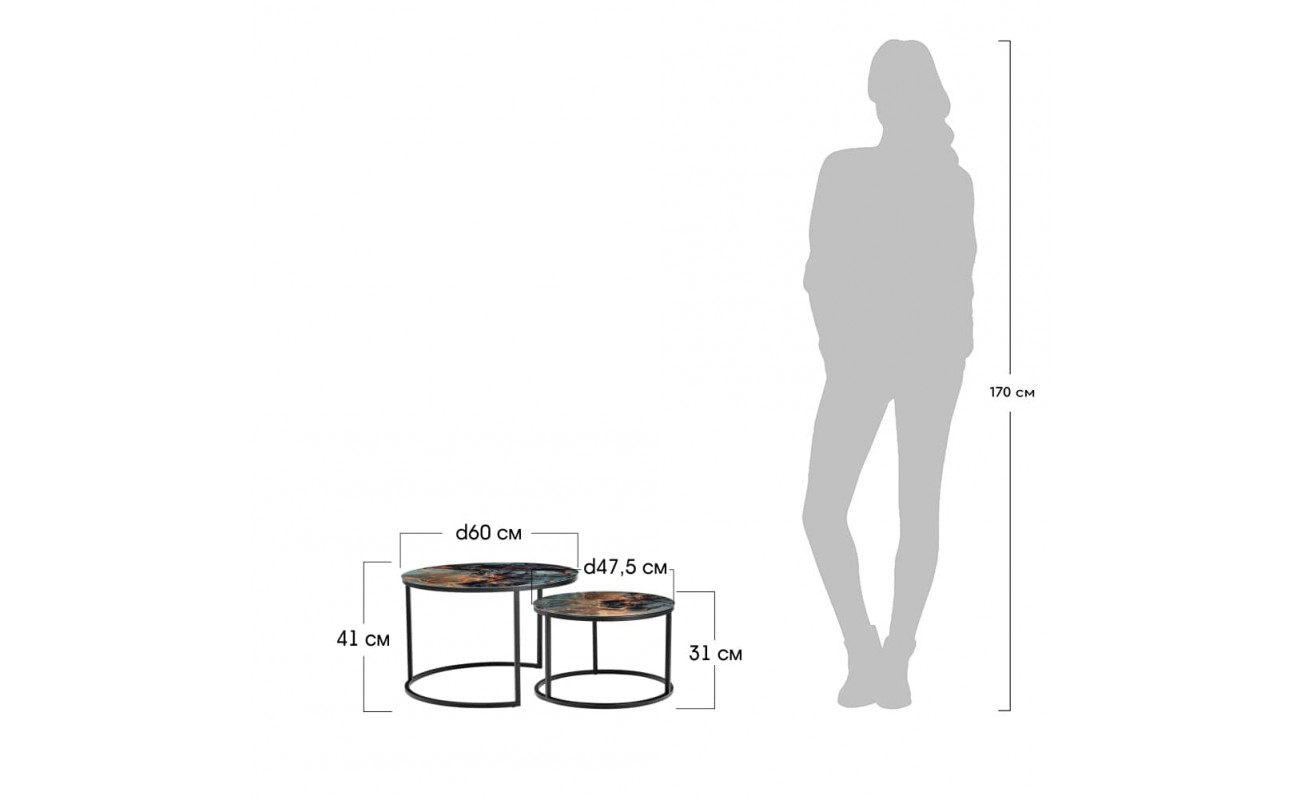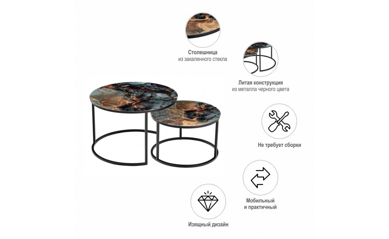 Технические характеристики Набор кофейных столиков Tango космический с чёрными ножками, 2шт