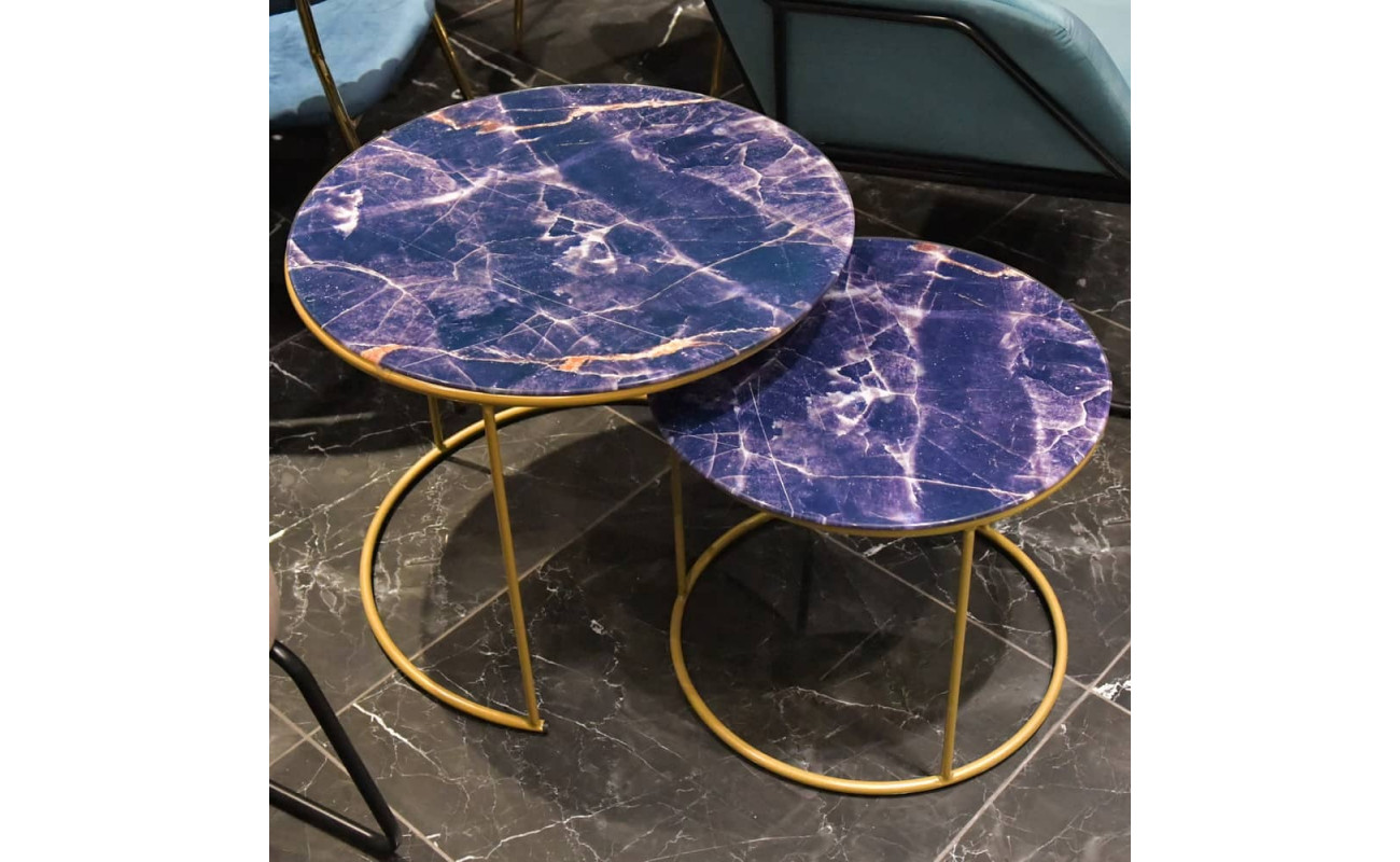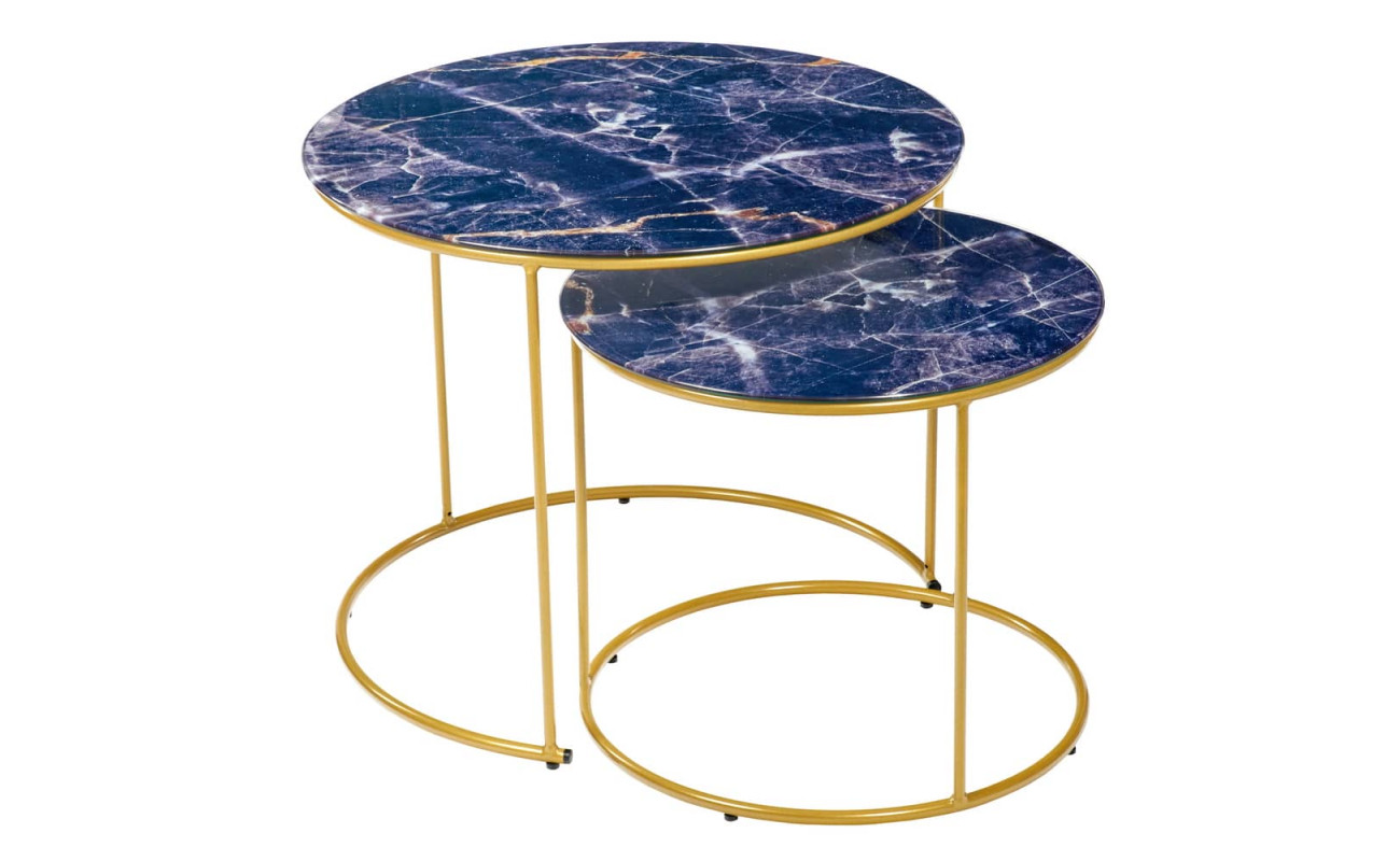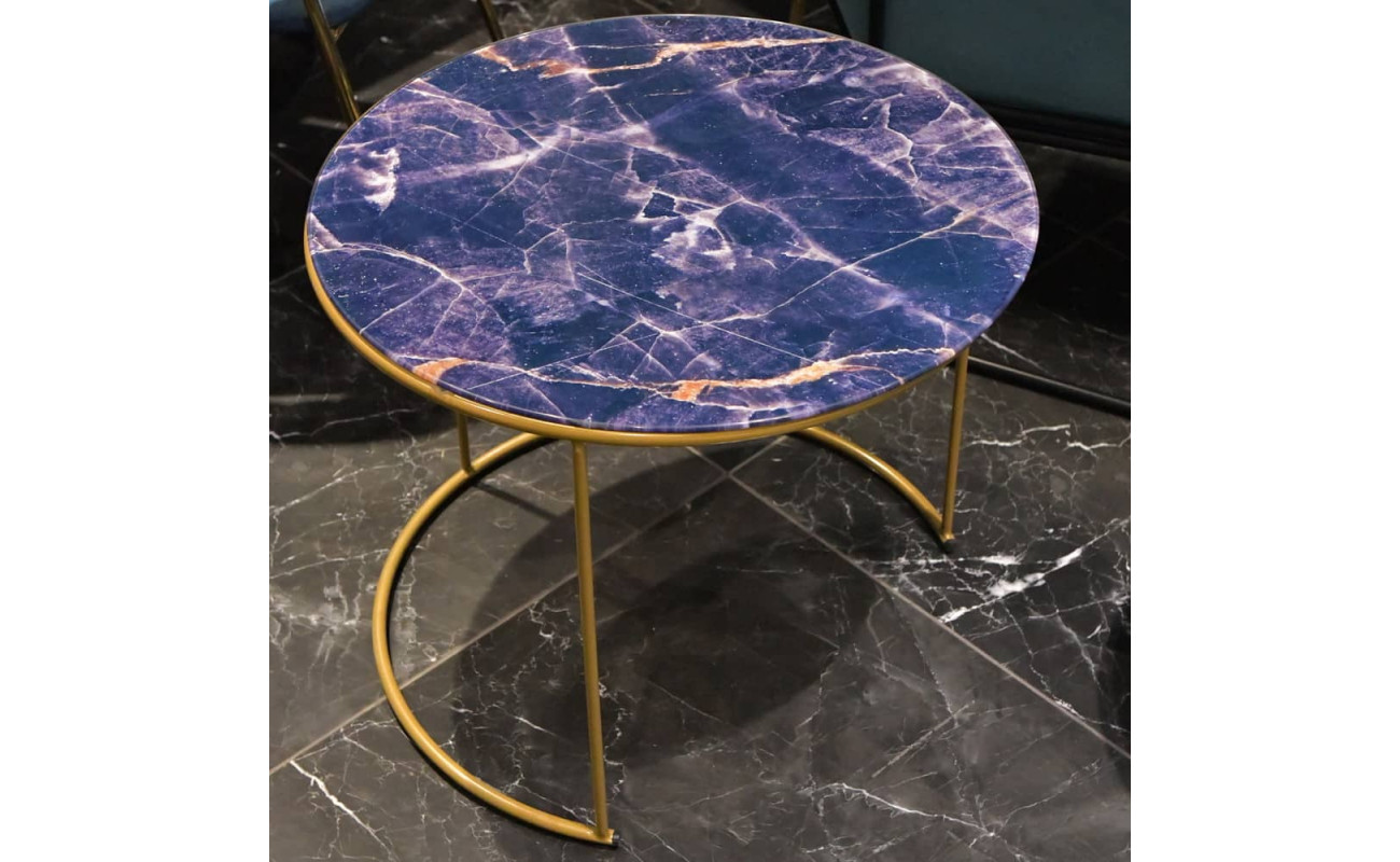 Набор кофейных столиков Tango темно-синий с ножками матовое золото, 2шт