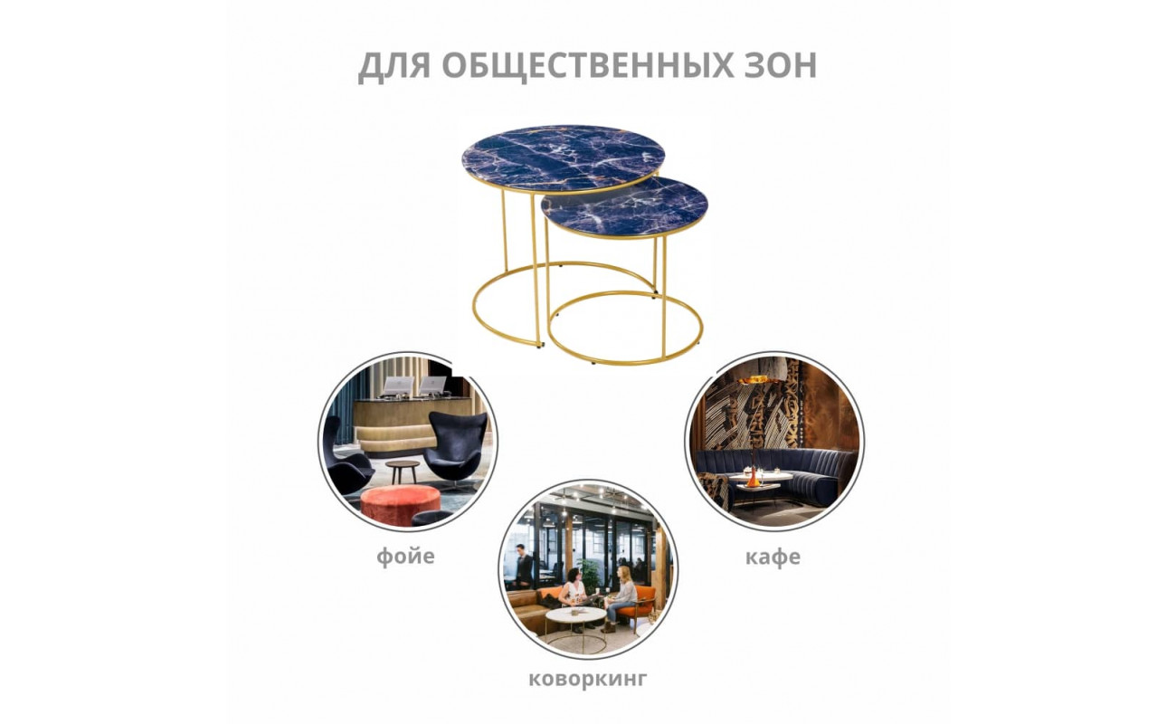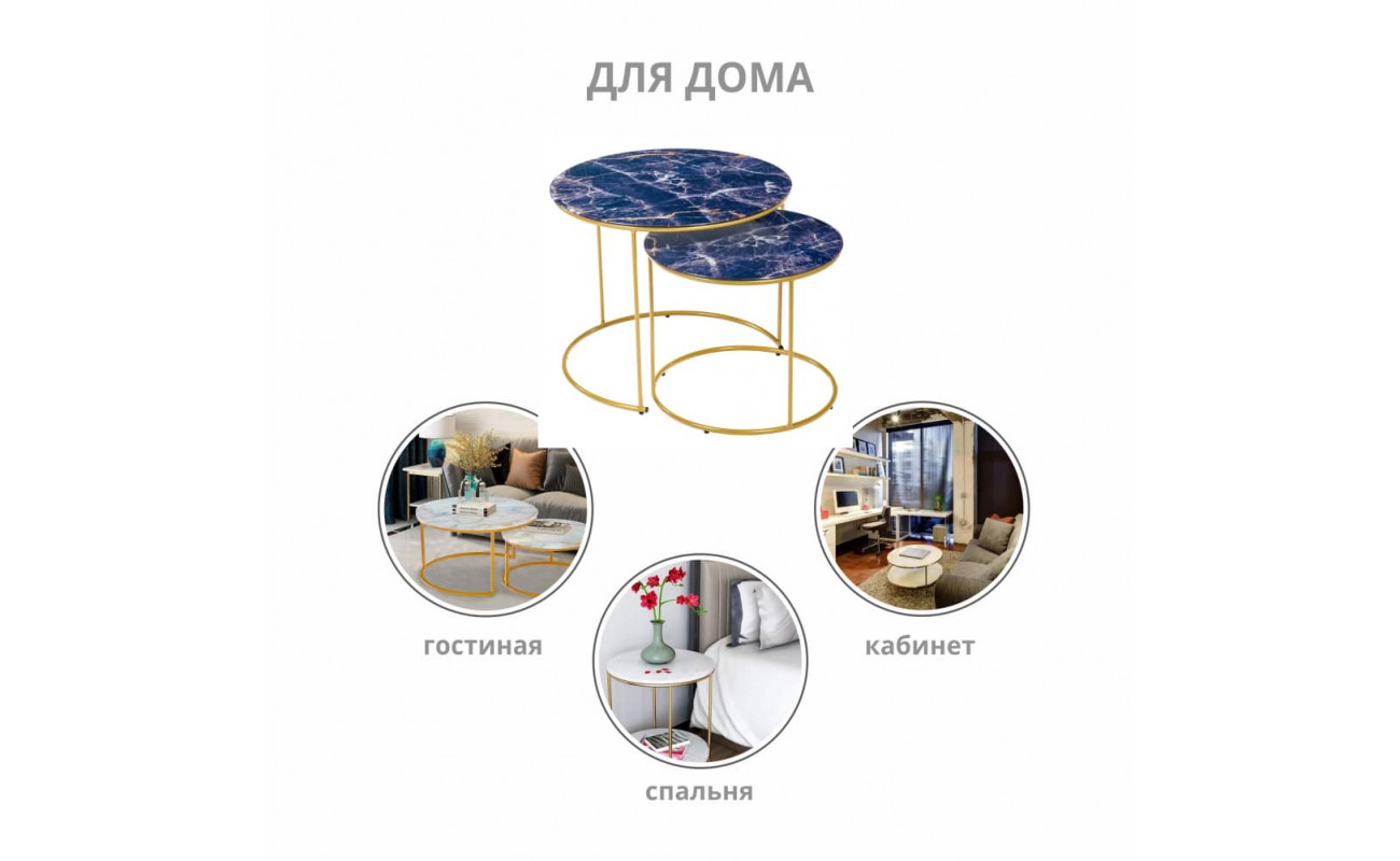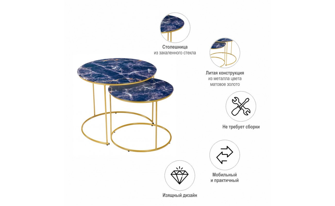 Технические характеристики Набор кофейных столиков Tango темно-синий с ножками матовое золото, 2шт